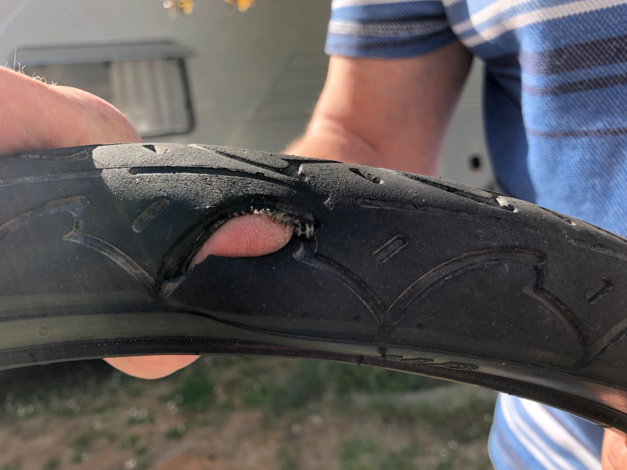 So, at the same time as ticking off yet another store in our “I-Spy book of Decathlons” Andy and I replaced the shoddy Chinese tyres and tubes on our dog chariots for a pair of Decathlon’s finest Chinese tyres and tubes.