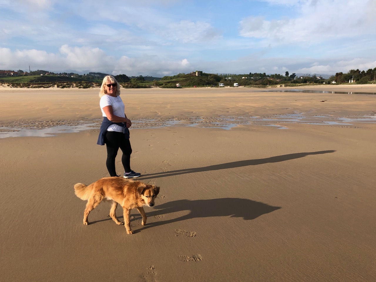 Wednesday morning, Wendy and I walked Alf to Oyambra beach and met five or so groups of pilgrims already on the road, marching westwards, meanwhile Andy and Lesley had taken Rio for a 5K run and when we returned to the campsite were doing yoga on their mats in front of their van (A & L not Rio that is). Just another normal morning in the Foskett household!