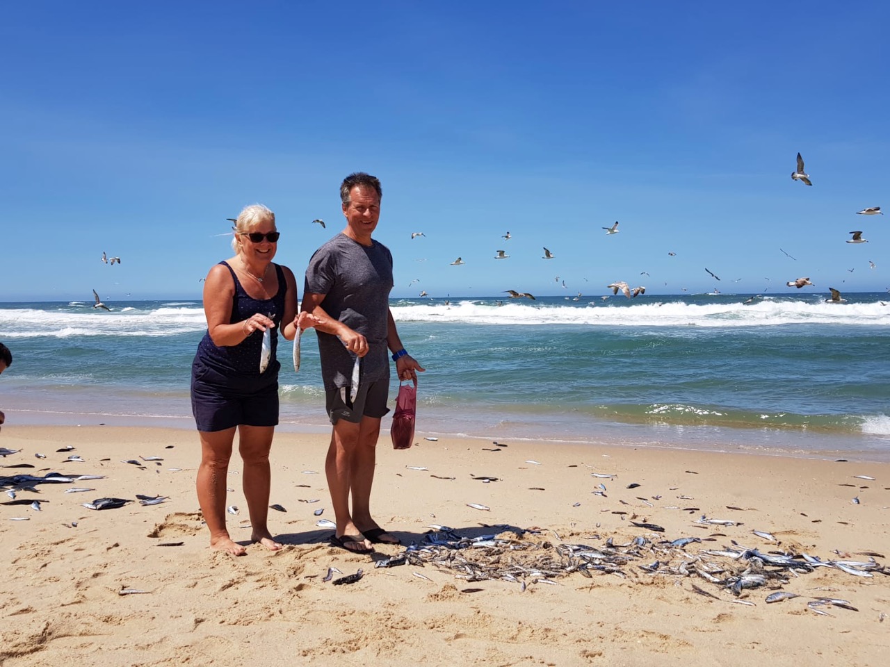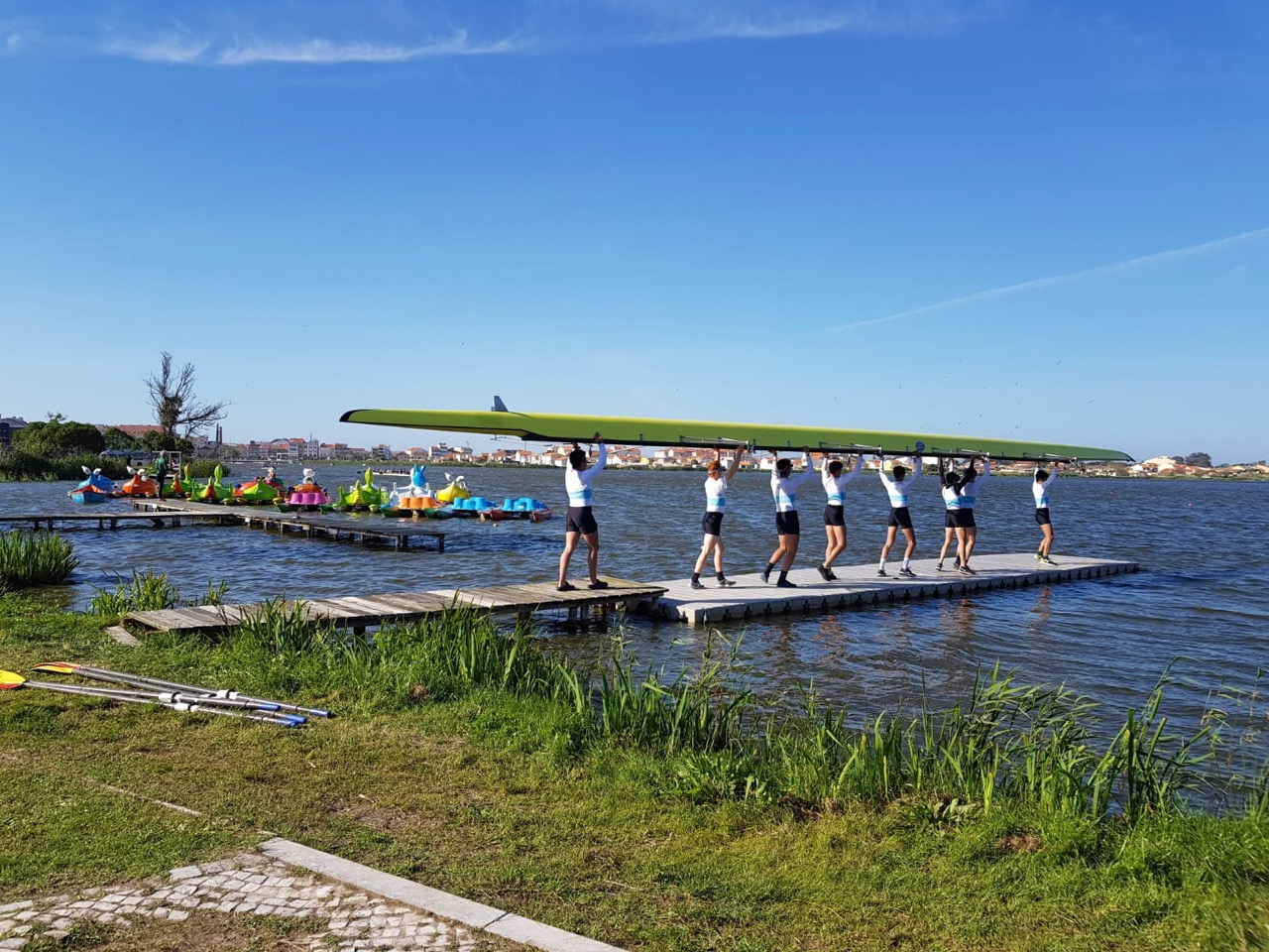 First the frogs were hosting the Portuguese under 21 rowing championships on their pond. The lawns along the side of the lake were crowded with excited rowers and their support teams. The public address system was blaring and there was lots of cheering and applause as race after race was completed. Then at the town’s beach the local fishermen were just coming ashore in their distinctive traditional high-prowed boats. These were once towed up the beach by teams of oxen but now they use tractors. Once safely up the fishermen began to sort through their catch and to Wendy’s initial dismay and then her delight, they threw the unwanted fish on to the beach for the sea gulls! This sparked the forager in her, and she dived into the sea gull melee, keeping the birds at bay with her elbows as she gathered up all the biggest ones. Much to the amusement of the locals.