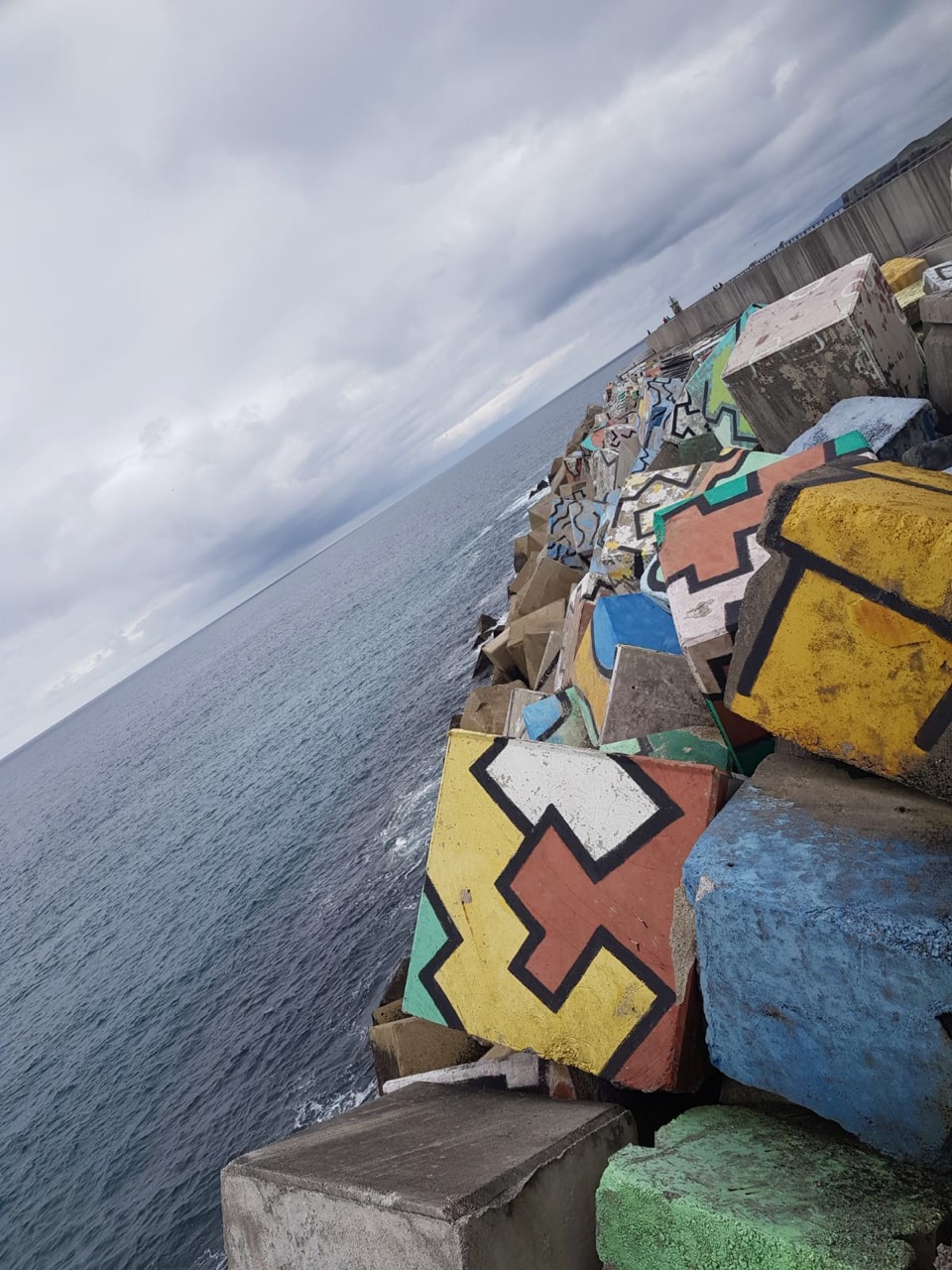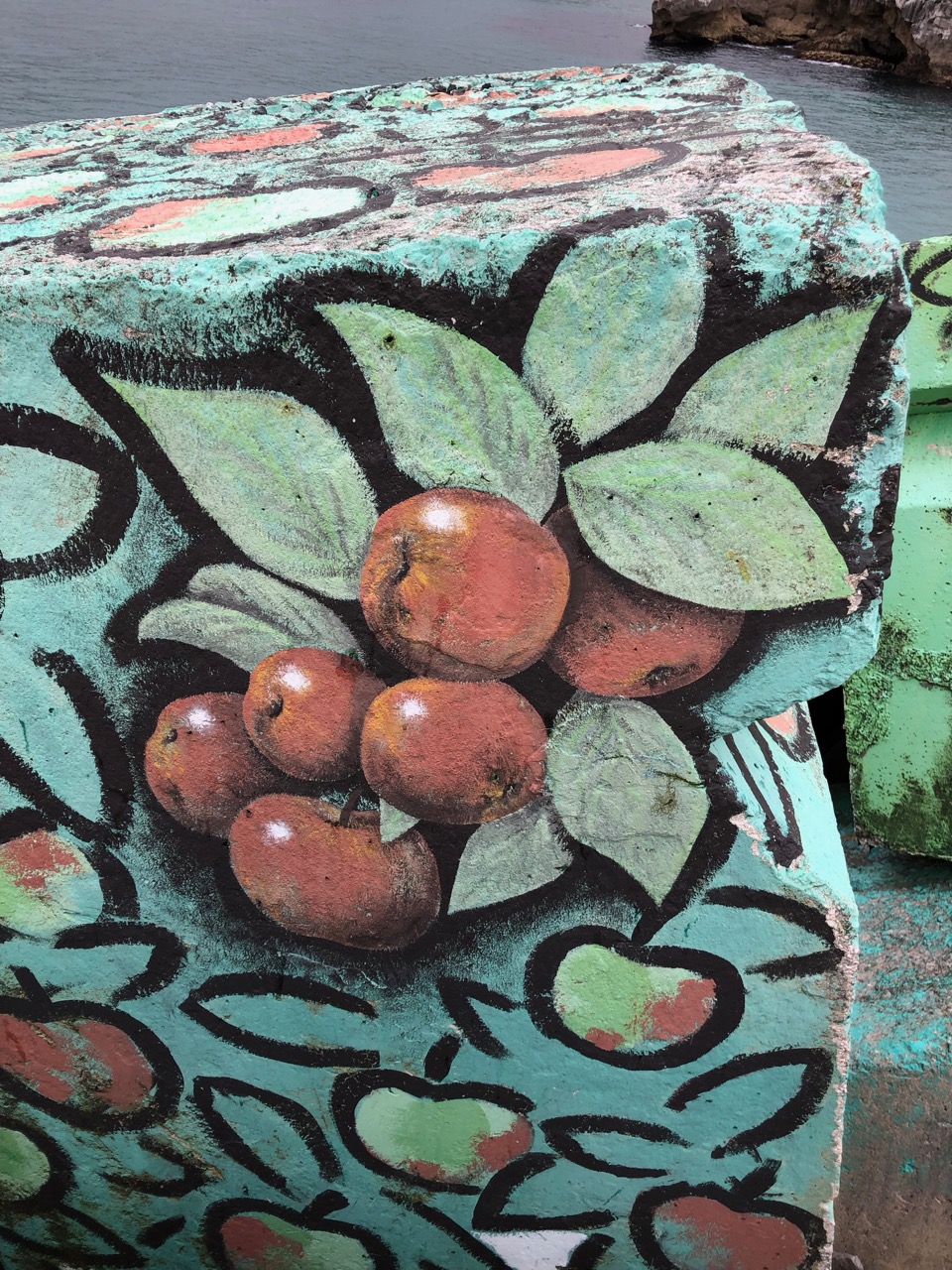 Llanes has a very pretty mediaeval centre, clustered around the still working fishing harbour. Our path took us past an old castle keep, church, burnt out manor house and remains of the town walls to the breakwater. The breakwater was quirky to say the least the two metre cubes reinforcing it on both sides had been painted by an artist and the result is called ‘Los Cubos de la Memoria’. A great way to brighten up an otherwise fairly mundane part of town.