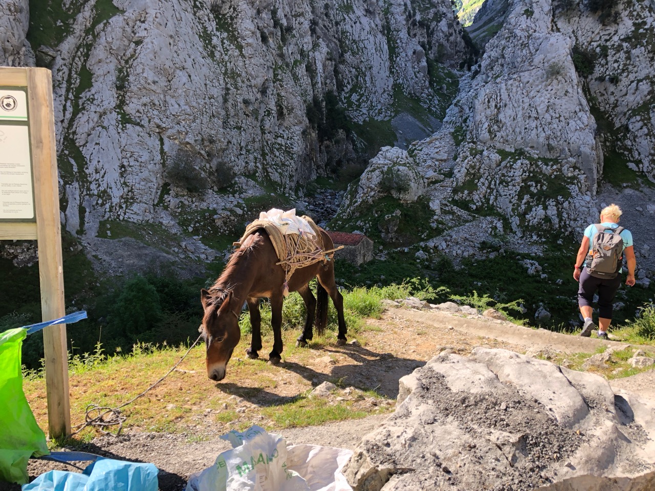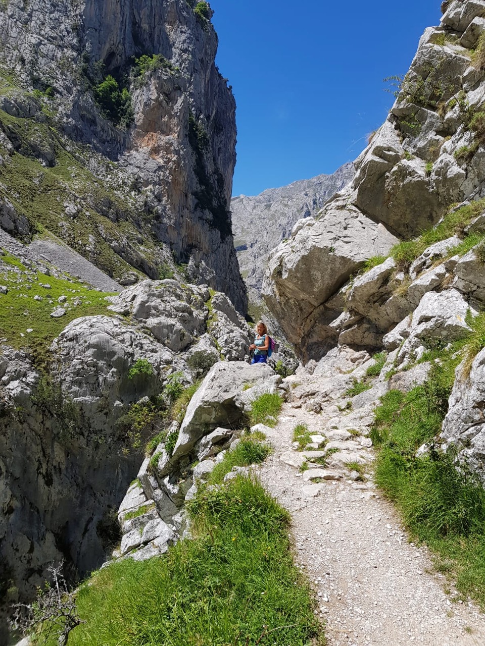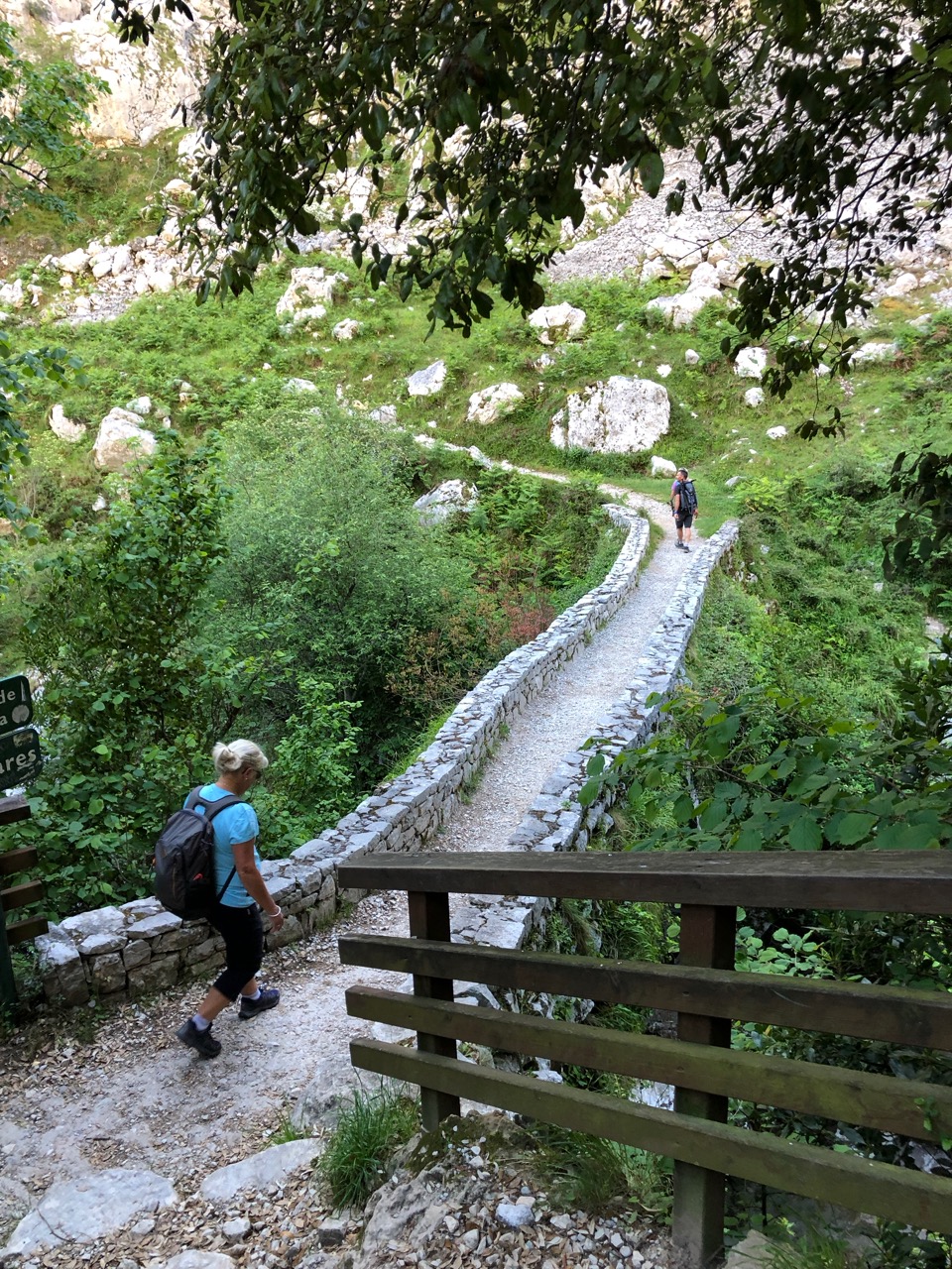 It meant another early start and a drive back to Poncebos after dropping our van in a car park in Arenas de Cabrales. This morning the car park was busier, but there was still a spot for Andy. This morning, however, the door to the funicular railway was shut and a notice said that the train was not running today for annual maintenance. The only day of the year when Wendy had planned to ride it to the top to meet us and it was closed! Well there would be no rest for her poorly Achilles and instead it would be a dose of ibuprofen and she would have to join us up as well as down.