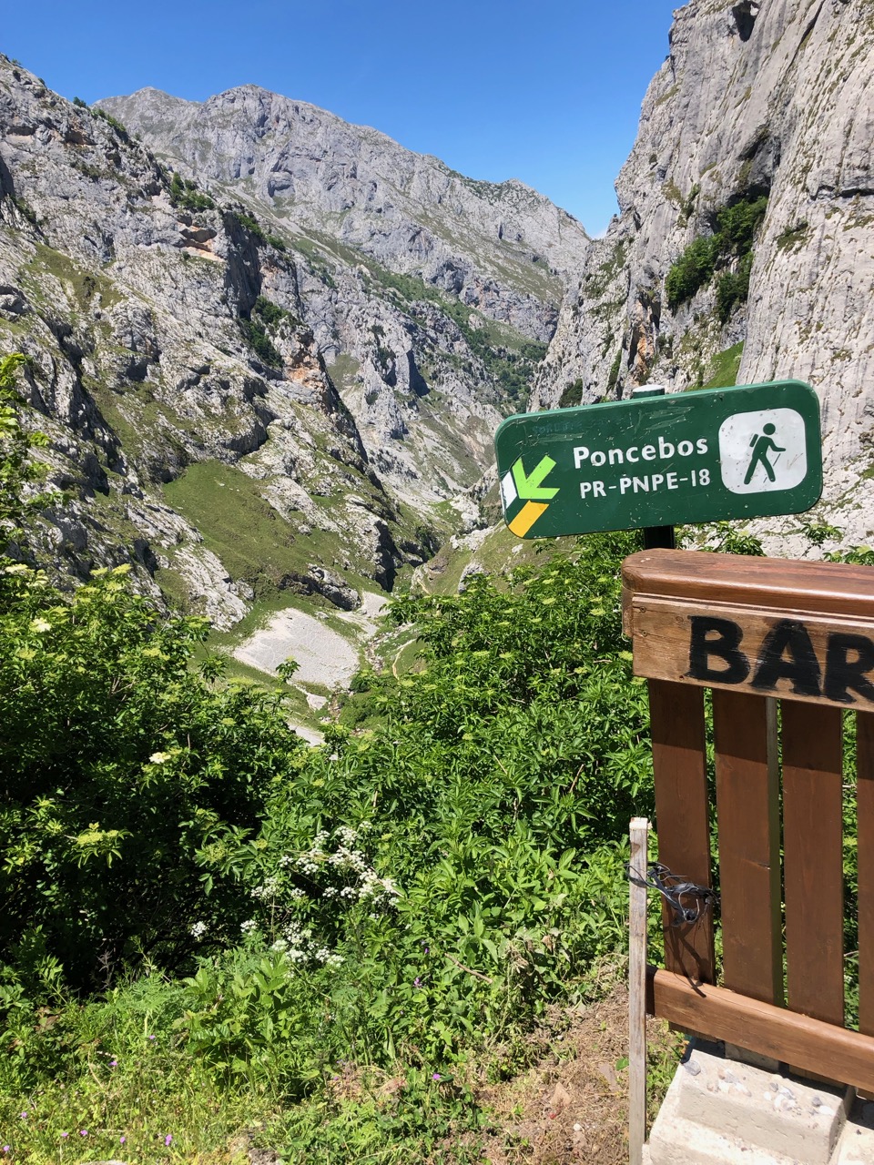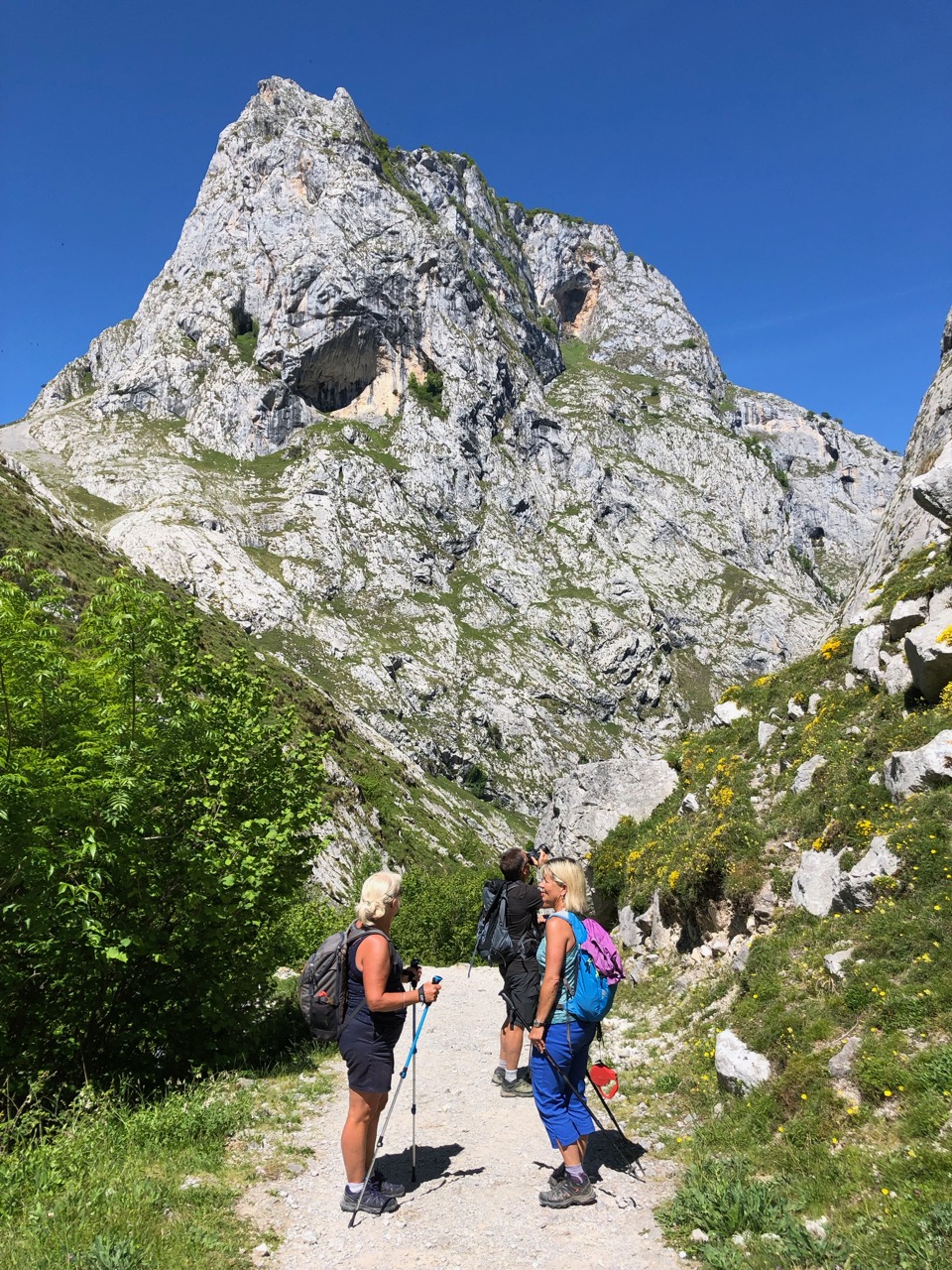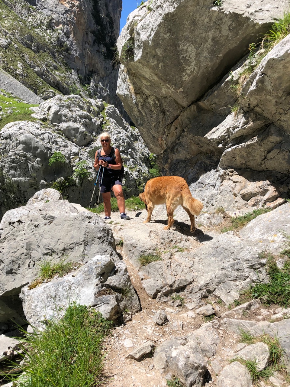 It meant another early start and a drive back to Poncebos after dropping our van in a car park in Arenas de Cabrales. This morning the car park was busier, but there was still a spot for Andy. This morning, however, the door to the funicular railway was shut and a notice said that the train was not running today for annual maintenance. The only day of the year when Wendy had planned to ride it to the top to meet us and it was closed! Well there would be no rest for her poorly Achilles and instead it would be a dose of ibuprofen and she would have to join us up as well as down.