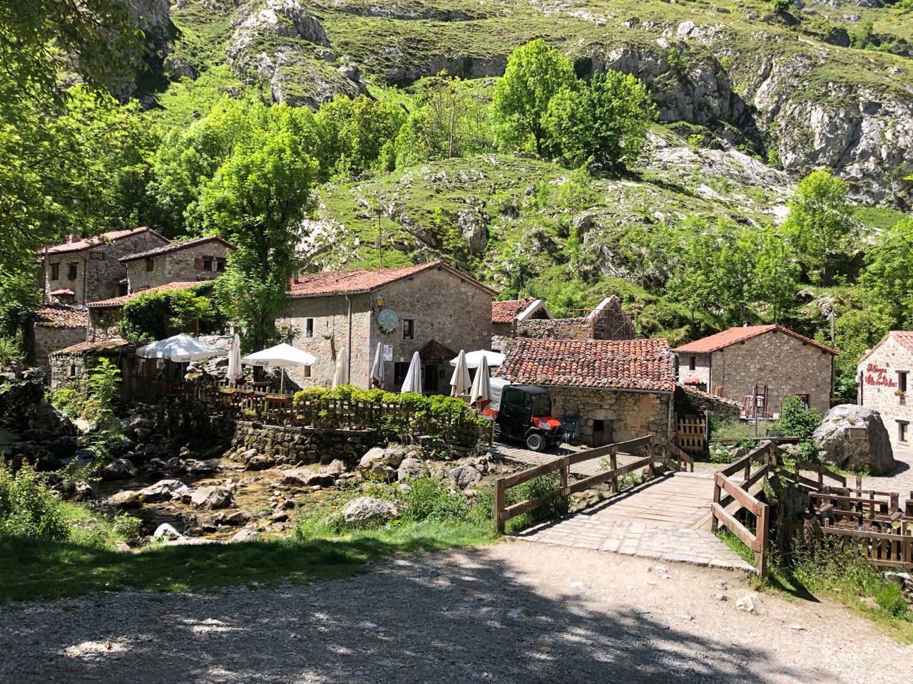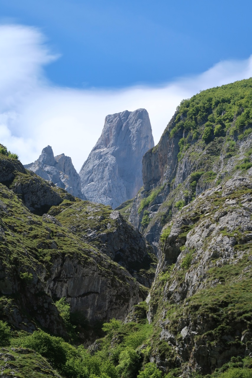The drop in temperature had no way affected our mood and in the bar last night we were still buzzing with the great day we had on the Ruta des Cares (see yesterday’s blog). We decided to change our plans and spend another day in the mountains before heading to the coast later in the day. This time it would be a shorter but steeper walk to the Picos most isolated village, Bulnes. A village so isolated that it cannot be reached by road and, until the funicular railway was built five years ago, everything was carried into the village on horseback up the very path we would be taking. Apparently, from the village, if the weather gods permit, you can get a glimpse of Naranjo des Bulnes, the incisor-shaped, monolithic peak that is the symbol of the Picos de Europa National Park.