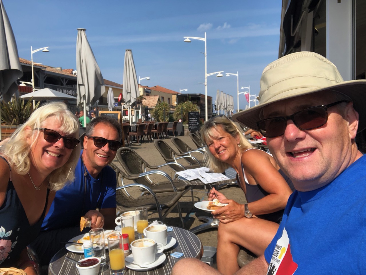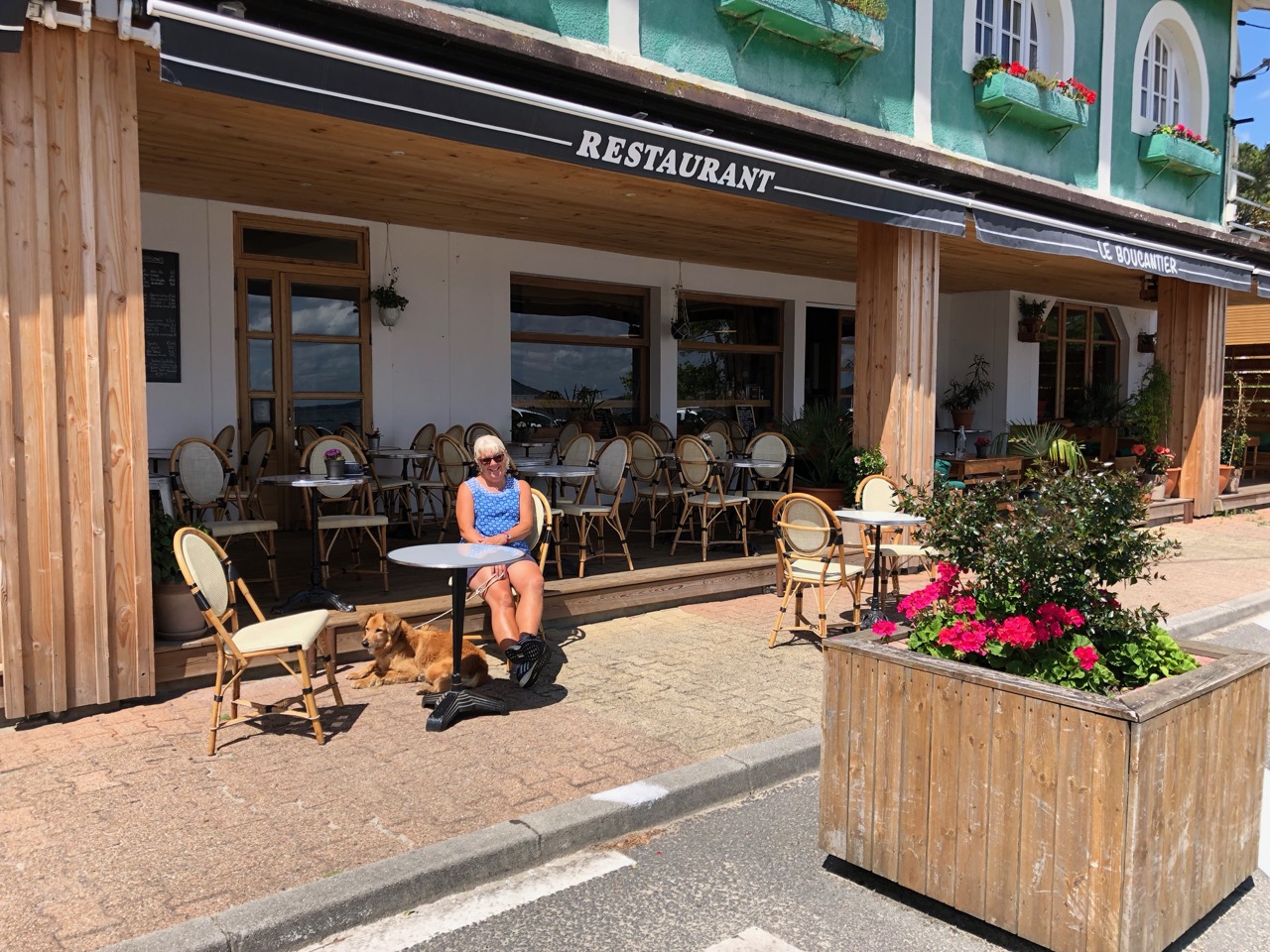 Breakfast of the trip must go to the one we had at La Braconne, my favourite café on the main street. Petit Dejeuner Complet, ham and eggs on toast, bread and jam, orange juice and coffee all for €7.50, almost the same price as we paid for the bread and jam in Le Moutchic. That was the day that we cycled into LO and after breakfast we sunbathed on the beach until lunch and tucked into moules frites. It was a good thing we had to cycle back.