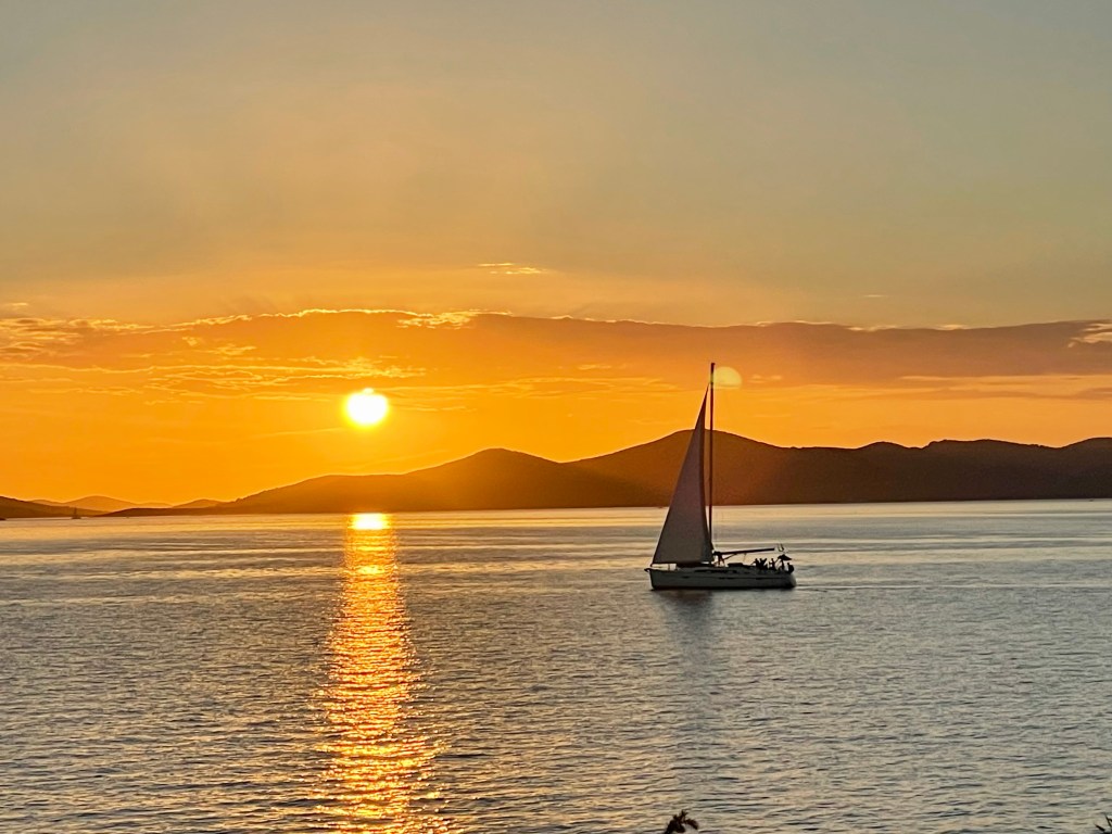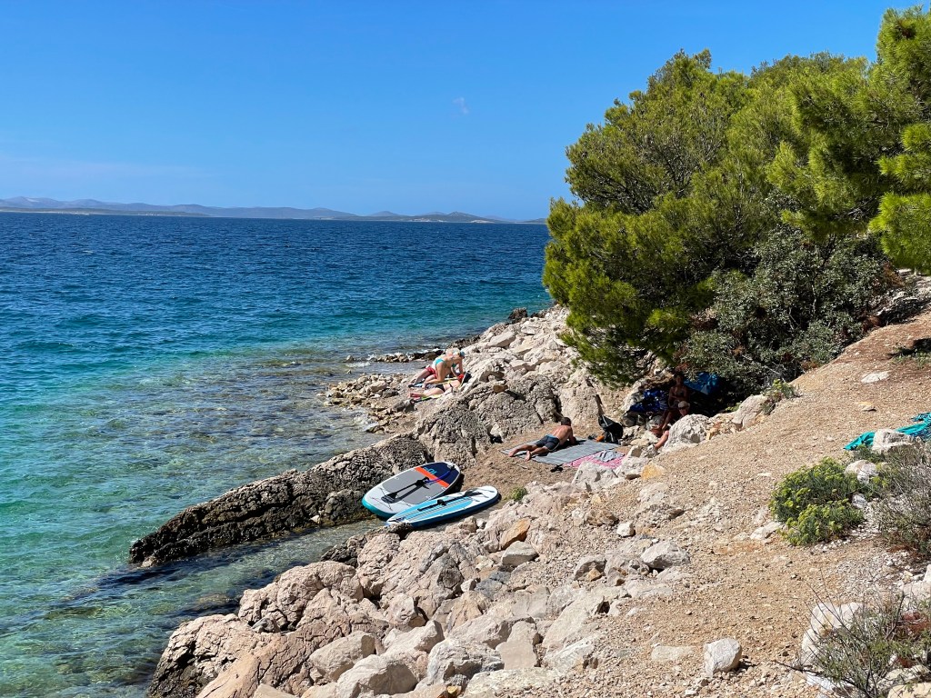 We are back on the coast after our brief sojourn in the mountains. With the sounds of cicadas ringing in our ears at the lovely campsite Oaza Mir, on the outskirts of Drage, just north of the island of Murter. Boy it’s hot!