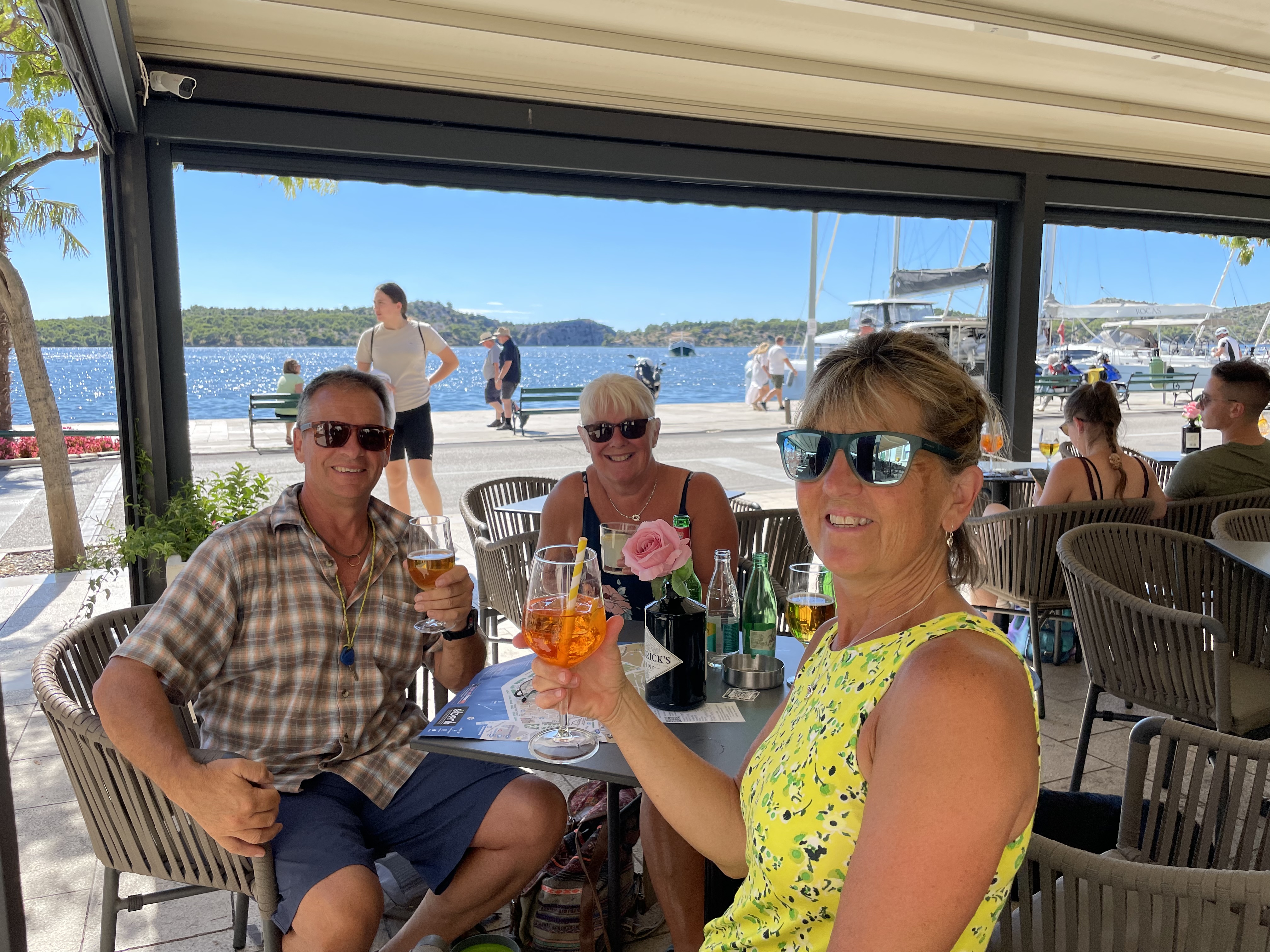 Today’s journey was just a quick 50 minutes, plus a supermarket stop for beer and wine, to Autocamp Krka, only 15km inland from Sibenik and on the edge of the Krka National Park. I just knew this was going to be a good campsite by the way the husband and wife team, that own the site, came out to meet us, rather than expecting us to go into the reception office. Mr Campsite Owner (no names as I’m not getting too matey again!) then showed us to our site and made sure that we were happy with it. Not only that they arranged for a taxi to take us into Sibenik after lunch (Sunday – no buses) and we signed up for a tour of the National Park they run  for tomorrow. Oh, and they have a delightful little restaurant on site too! Whats not to like?