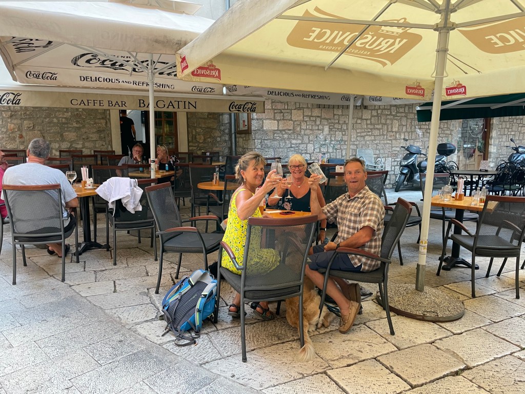 Now we had worked up a thirst, it was time to find a bar. The first bar was selling drinks at Les Gets prices (posh France!). so we made our excuses and left and instead found a tiny square that was the home of café bar Bagatin where the beer was closer to €2 a pint. The owner was a great chap too, as our taxi driver had let us down (he wouldn’t come and pick us up as he was having ‘family time’!) and so Mr Bagatin rang around all the taxis he knew until he found someone who would take us and the two dogs back to the campsite. The next time you are in Sibenik, please tell Mr Bagatin I sent you?