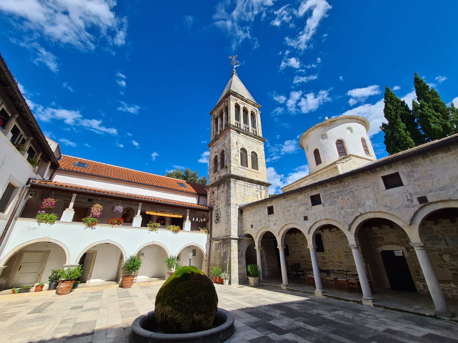 Fully refuelled and fizzing with walnut brandy we waved adieu to Roski Slap and headed for the Krka Monastery. This was a fascinating place; a Serbian Orthodox monastery and school (for 15 to 20 year-olds), based on a Byzantine church that was built over Roman era catacombs used by early Christians when Christianity was persecuted by the Romans. Following a tour of the monastery that didn’t overstay its welcome, we were back in the minibuses for the journey south, back to the campsite. All in all a brilliant eight hours that had given us a much better insight into the National Park than we could possibly have achieved on our own.