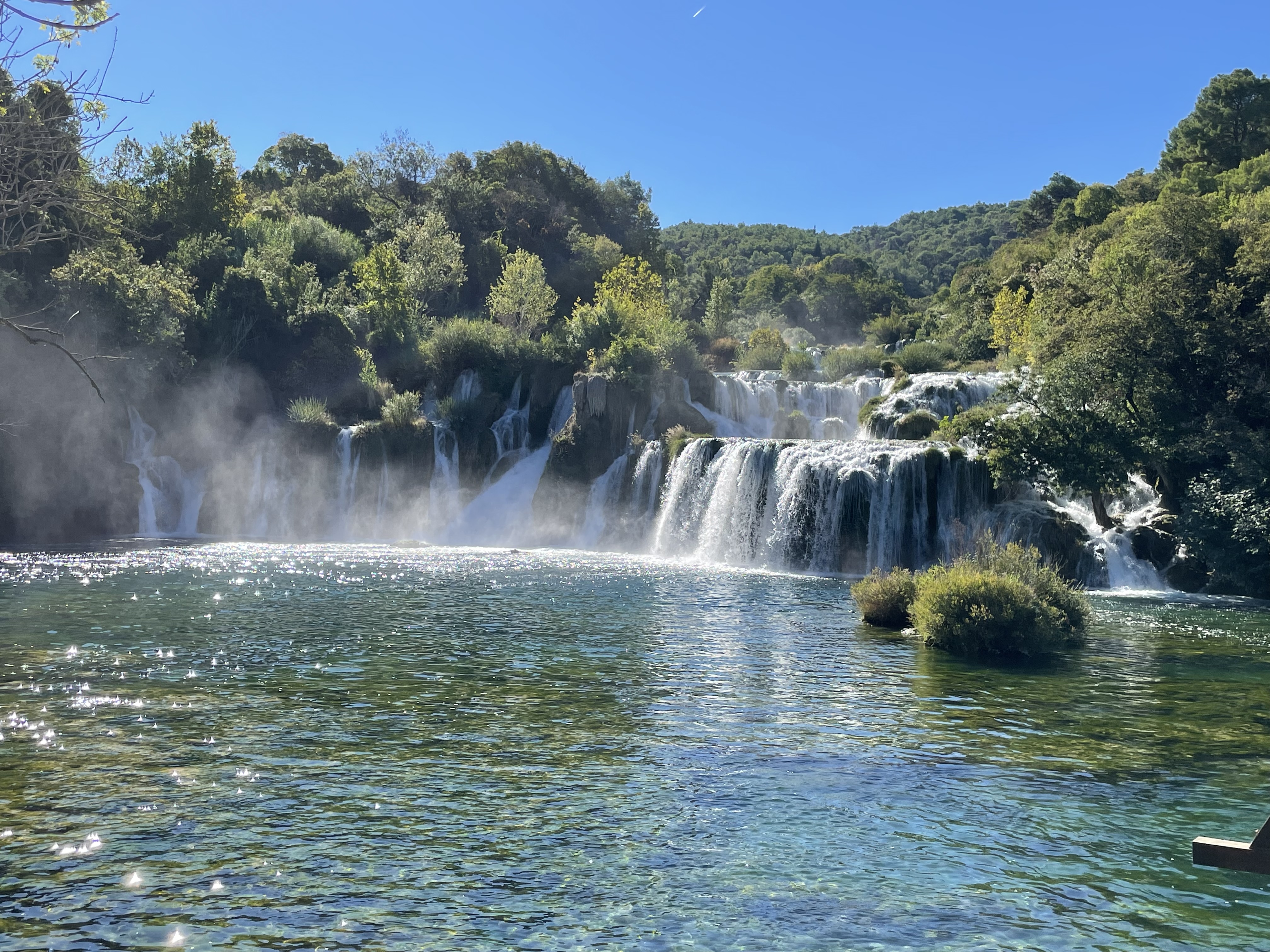 Monday dawned with clear blue skies and the September sun struggling to climb over the horizon, like a teenager getting up on a school day! We were up early as we joining the camp excursion into the Krka National Park. There were 15 of us in the minibus, with the four dogs perched on strategically placed towels – we had been told to give the guide a HRK20 tip at the end of the tour in lieu of a charge for the dogs.