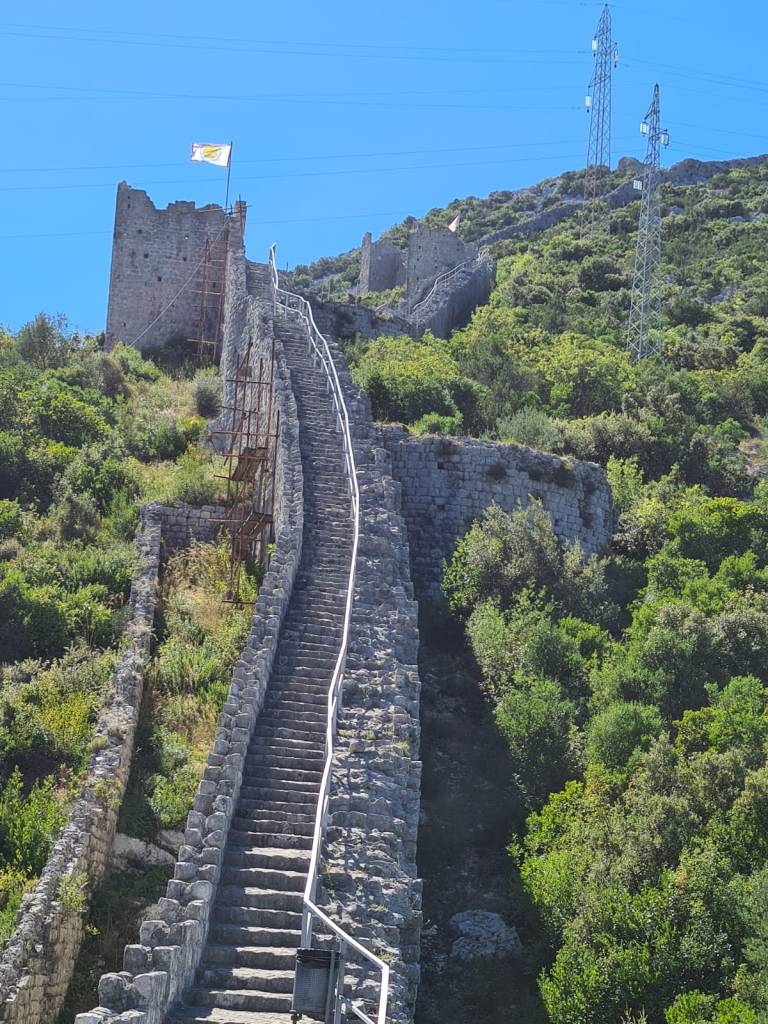 Ston and its partner village, Mali Ston (little Ston), were the centre of a power struggle seven centuries ago. They were part of the Republic of Dubrovnik but neighbouring, rival powers, the Venetians, the Ottomans, etc. had their eyes on Ston’s very lucrative salt pans. In 1350, to aid the defence of the towns a seven kilometre wall was built linking up the town walls and half the mountain between them. Today five kilometres of wall still exists, making it the longest, complete, defensive wall in existence. Apparently, the walls were built in 18 months and cost 12,500 ducats. I’ve no idea how much that is, but Ston’s salt business was worth 15,000 ducats a year at the time, so probably well worth it!