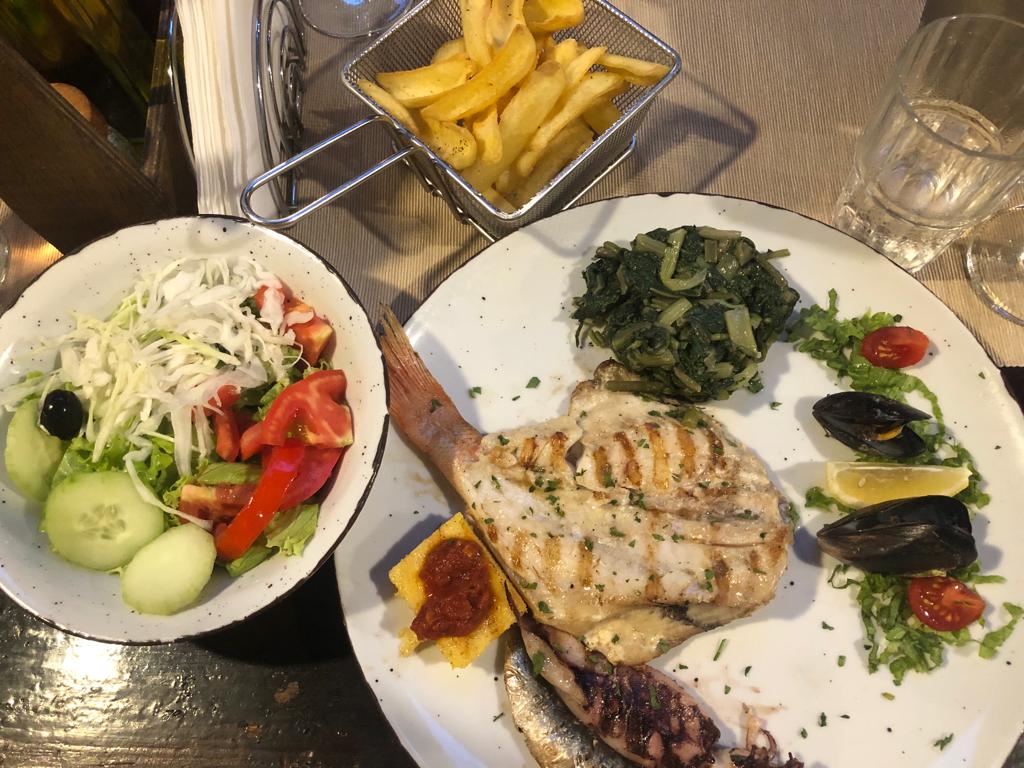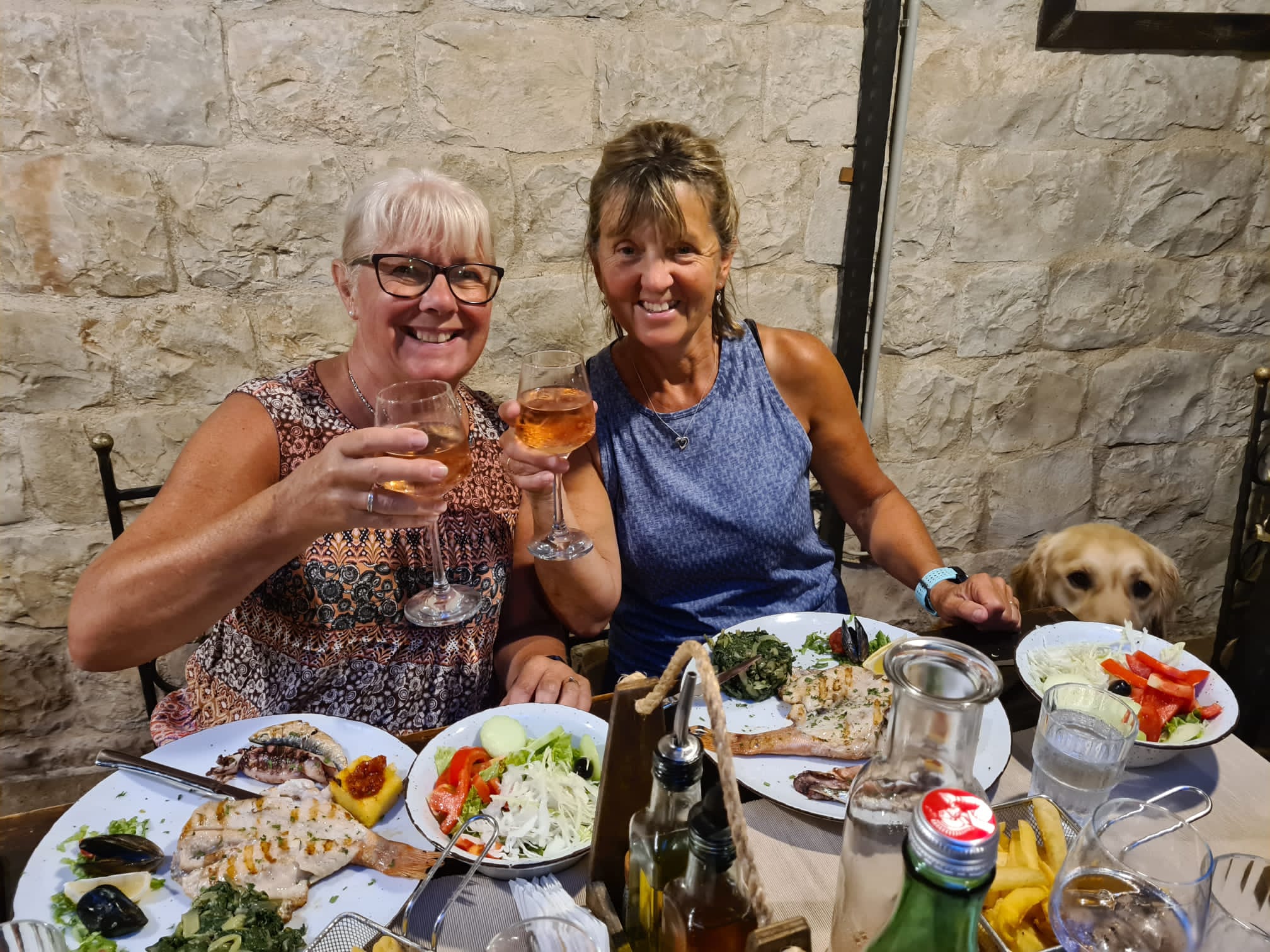 As evening approached it looked as if the rain was about to perform an encore so we jumped into the first ‘Konoba’ (or tavern in Croatian – after almost two weeks I am slowly widening my vocabulary from ‘hvala’) that had a decent roof. Boy we struck lucky! Great food (3 mixed fish platters and a risotto) and a great waiter (who also had a golden retriever) who appreciate our patience and understanding on such a busy night that he treated us to four shots on the house. It had been a long night, so, sportingly, Andy finished them for us.