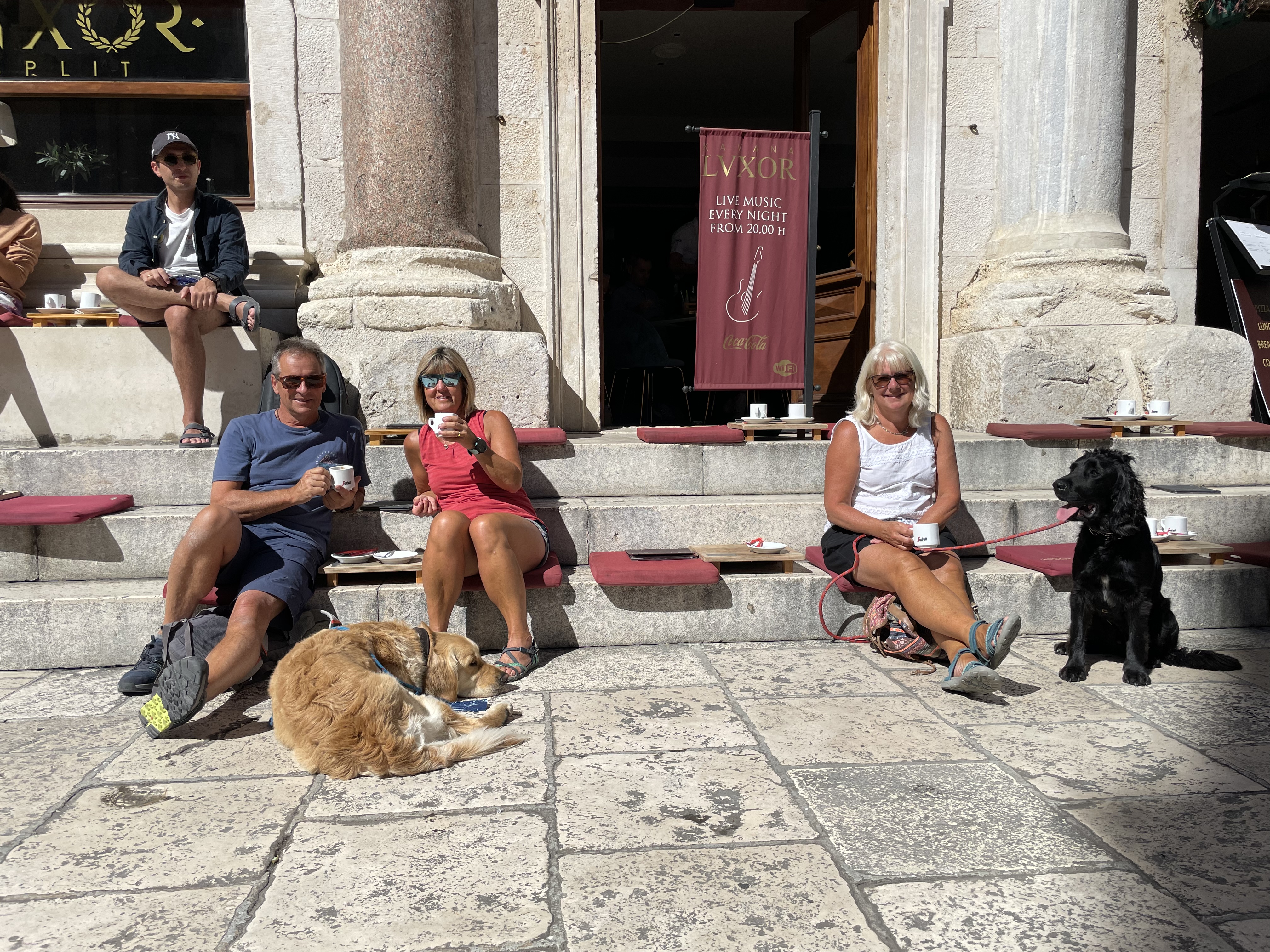 After a couple of hours of wandering around the palace and the medieval part of Split next door, we found a table at, what Wendy insists is, the restaurant we ate at in 2018. A great place to while away a couple of hours over a leisurely lunch and people watch. There was no rush. We didn’t need to be back at the ferry queue until 1630, and in the end we could have easily frittered away another hour, rather than sweating in the afternoon sunshine on the dockside. We did make some chums as we waited though, with members of the Harley Davidson Owners Group (Western Chapter). A couple of them came over to ask us about motorhoming in Croatia as they had a motorhome back home. They were part of a group of ten bikes from Bristol (mostly couples our age, riding two-up), on a tour of Croatia and Italy, riding between hotels.