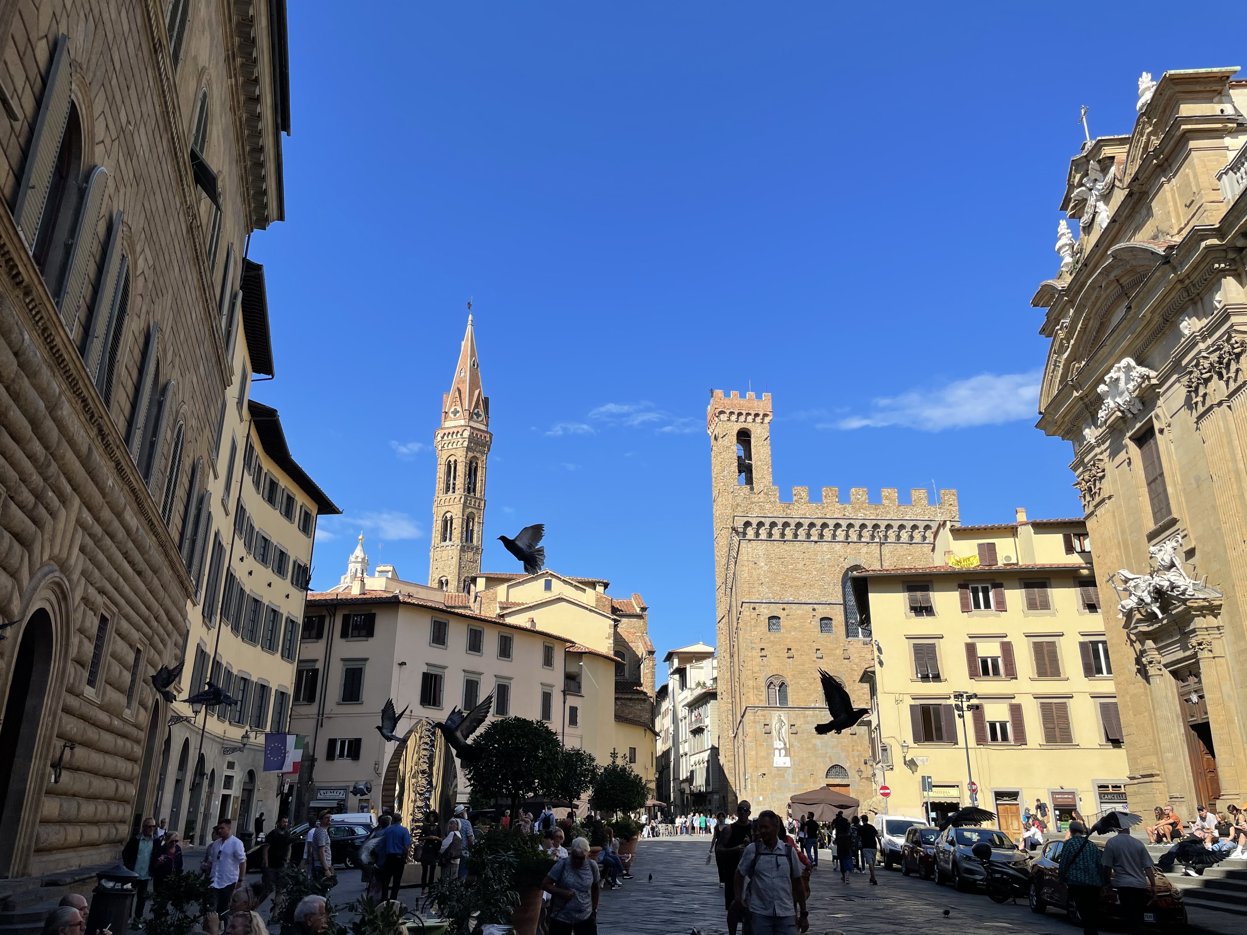From the cathedral we followed our own tour of the cities key points, including Dante’s birthplace and palace after palace. Those bankers and traders have certainly left their mark. Florence is a living city of splendid buildings, museums and galleries. Next time we are going to have to come without the dogs so we can have a look inside too, I hear they have some great paintings?