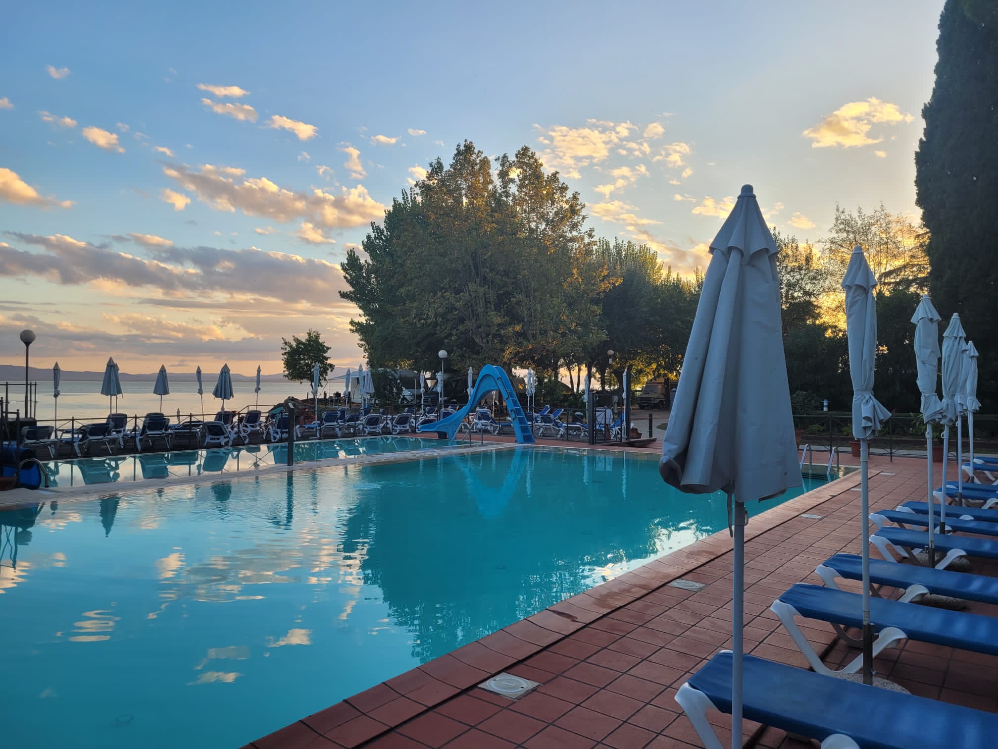 Do you know which is Italy’s fourth largest lake? Don’t worry, I will save you the time googling it. The answer to this unlikely pub quiz question is Lago Trasimeno, a glorious, almost circular gem, half way between the east and west coasts. We were booked in for a couple of nights at the very tidy Camp Kursaal, in the grounds of a smart hotel, right on the shore.