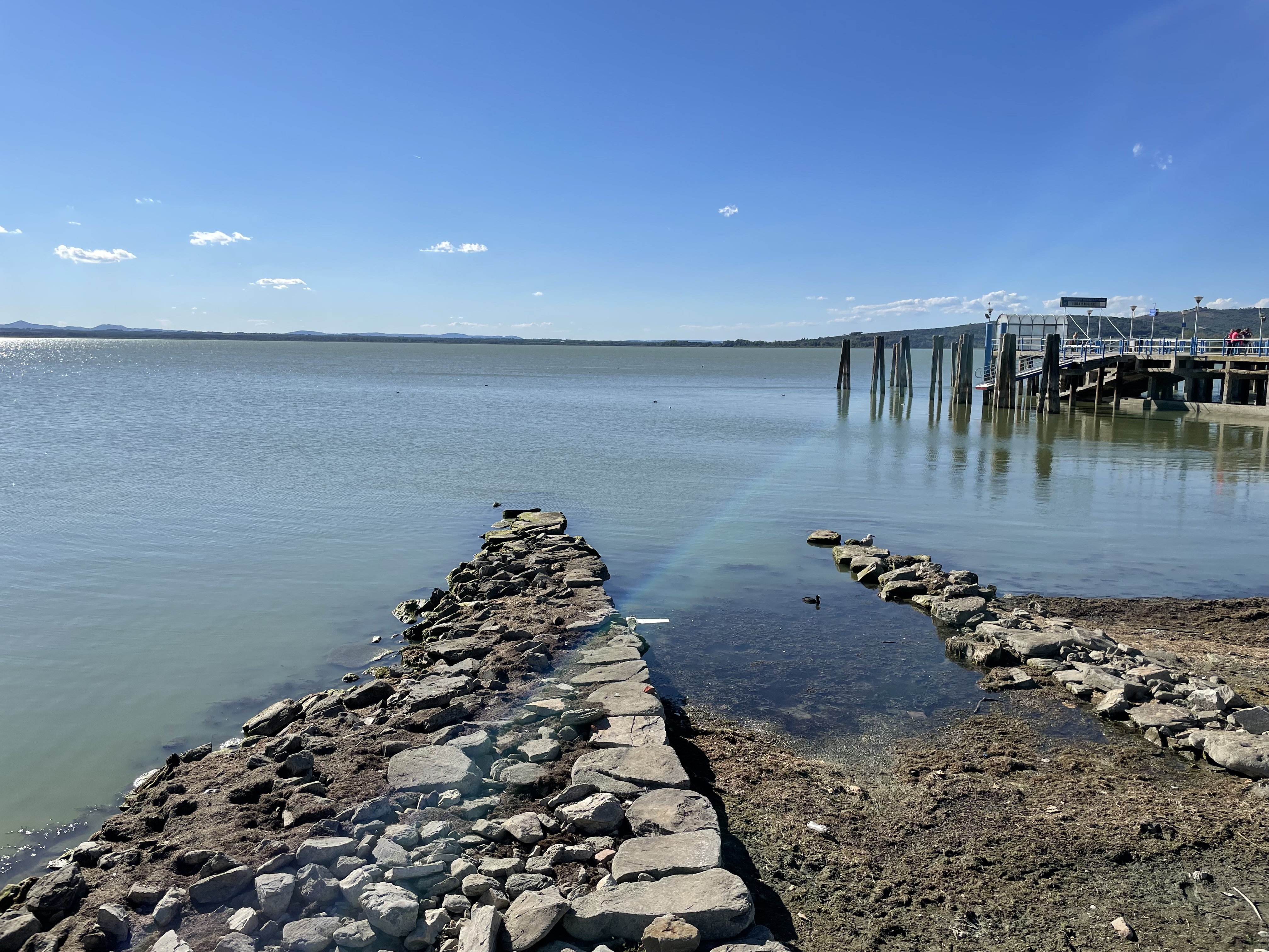 The lake was created by a geological fault and is only fed by a couple of streams. It relies mainly on rainwater and so it is at the mercies of the climate and has suffered in times of drought. At the moment the water level is at least a metre below its normal level. In the 1600s there was an extended period of drought and the water level feel so much that the lake was more a swamp and a lot of fish died. This led to the first of many exoduses from the island