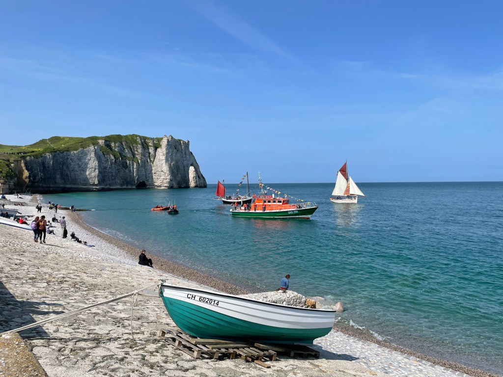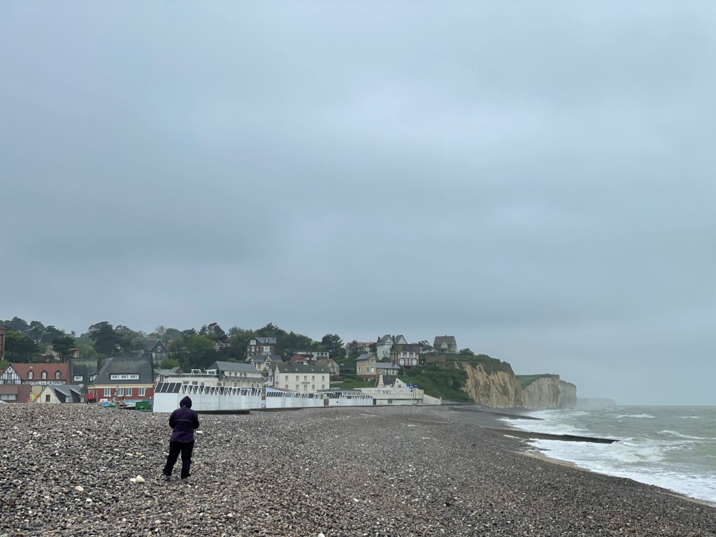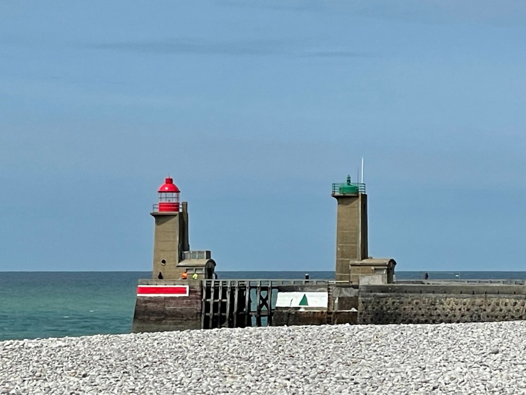 We’ve spent the last week toddling west along the coast from Dieppe. It’s a coast of undulating hills, of chalk cliffs studded with flints, of shingle beaches and some very pretty villages and small towns.
