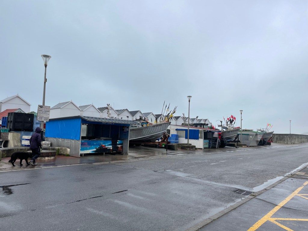 Part of our thinking in planning this trip was the awful weather we had this time last year in Scotland and Cumbria. Friday we woke up to find that Scotland had come to us! It was pouring down and continued to do so for the whole day. It was a good day for reading, puzzles, films and cups of tea! During the day we also came up with a five point scale for a day’s degree of wetness; and Quiberville scored a 5!