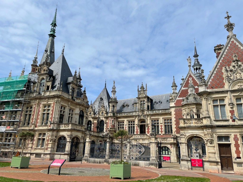 Guide books rave about Fécamp, but really it is just an old fishing port (herring and Newfoundland cod) that has seen better days. The highlights for us is the Benedictine Palace, a bonkers building built at the end of the 19th Century by an entrepreneur who nicked the recipe for the liqueur from the monks, the Abbey which was built by the ancestors of William the Conqueror and hosted his victory celebrations after the Battle of Hastings (it made a fortune from pilgrims in medieval times by saying it had a fig tree that contained the blood of Christ) and opposite the Abbey are the remains of one of William’s many boyhood homes.