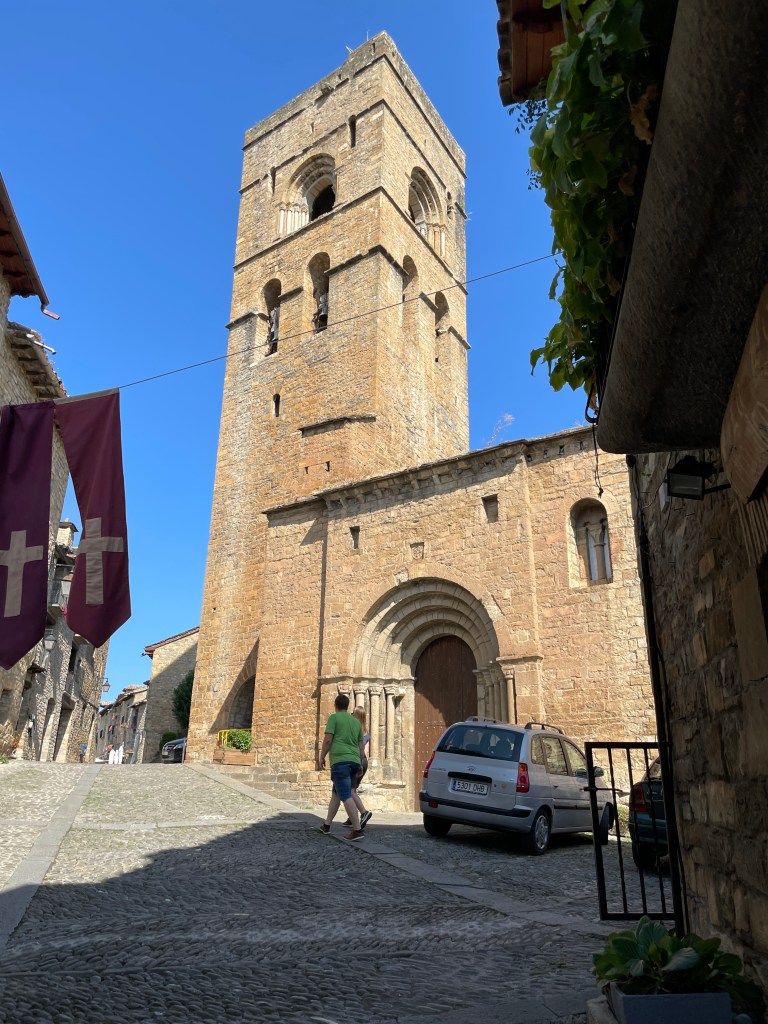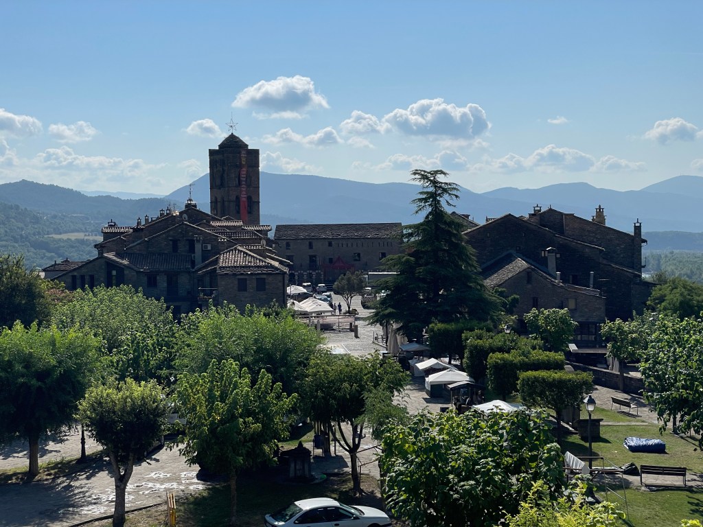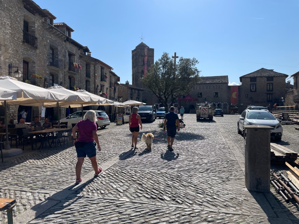 Waving a fond farewell to Torla we turned our vans south as we followed the river Ara down the valley, we were heading for the N260. A road supposed to be the prettiest in Europe and recommended to us by Grahame who had ridden on it a couple of years ago on a motorbike. It took us to the town of Ainsa-Sobarbe at the confluence of the Ara and Cinca rivers. We had a quick coffee in the square amongst the remains of a re-enactment the night before of the Christians expelling the Moors and then it was on to La Pobla de Segur over the crazy mountain road that is the N260. It was a very pretty road, twisting its way higher and higher through valleys and forests. Eventually it became too scenic for Wendy and so we took a left on to a road that turned out to be equally ‘scenic’.