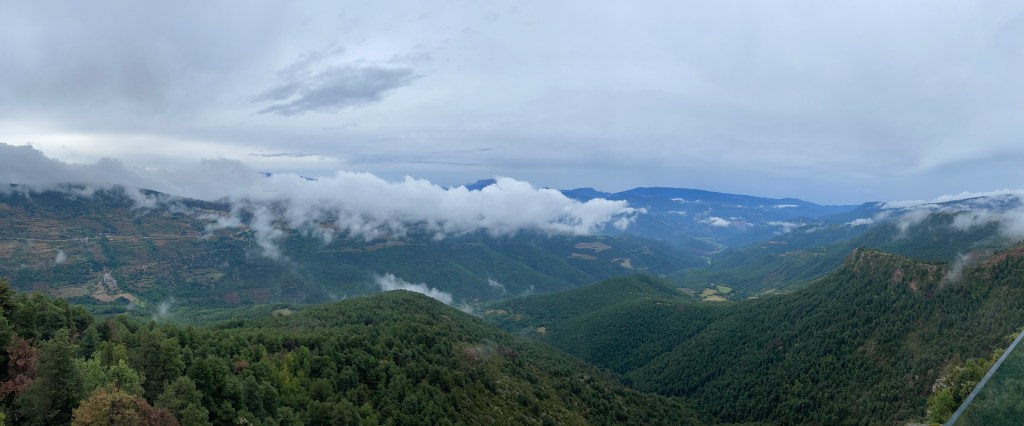 Late in the morning the rain eased enough for us to rejoin the infamous N260, who had now promised to behave and began to climb up and up, in 3rd gear most of the way through stunning scenery until we broke through the clouds at the Coll de Canto, a not insignificant 1720 metres above sea level.
