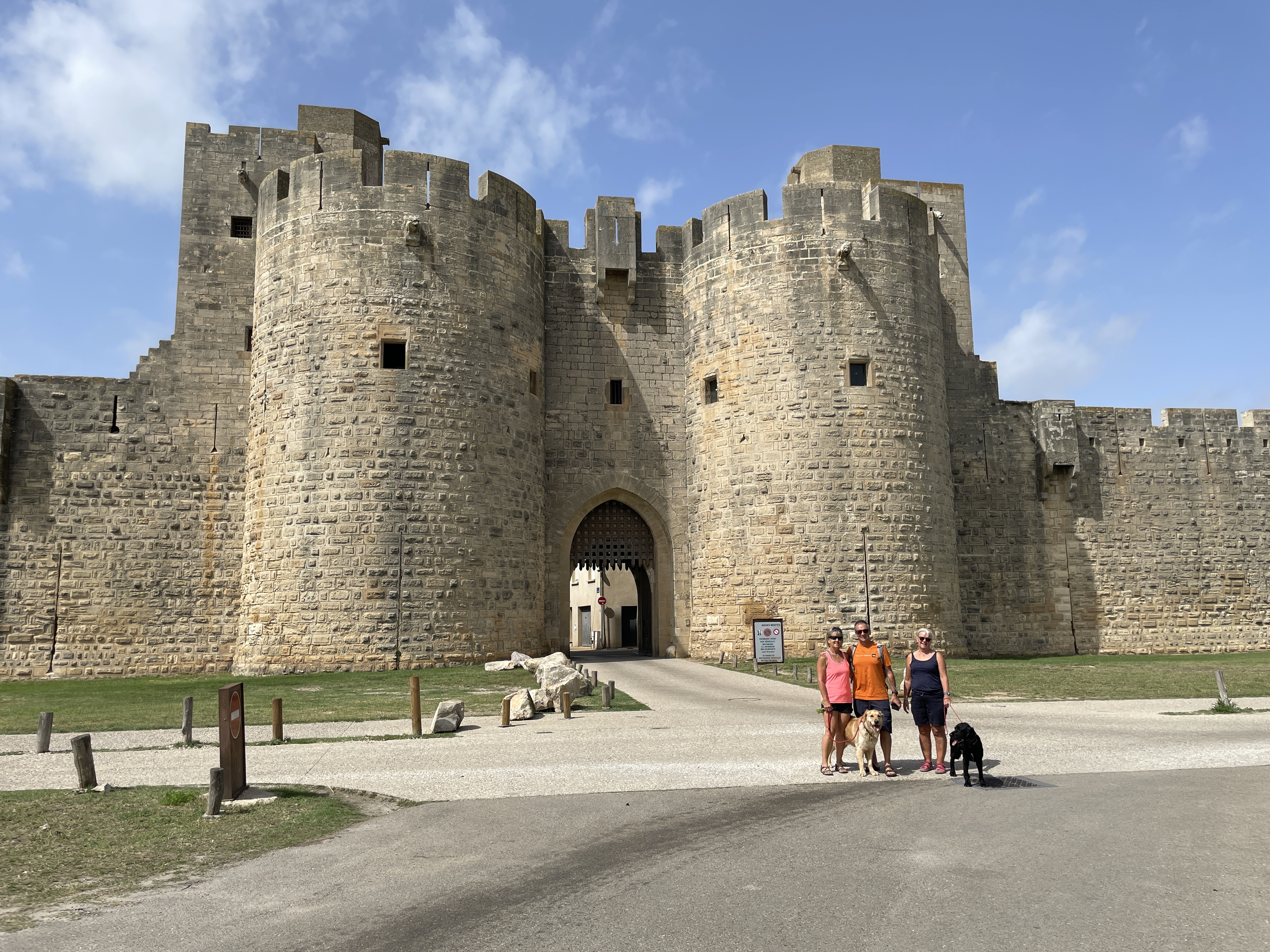 There was a fresh breeze against us as we drove along the coast to the 13th century town of Aigues Mortes (which translates as Stagnant Water – lovely!)