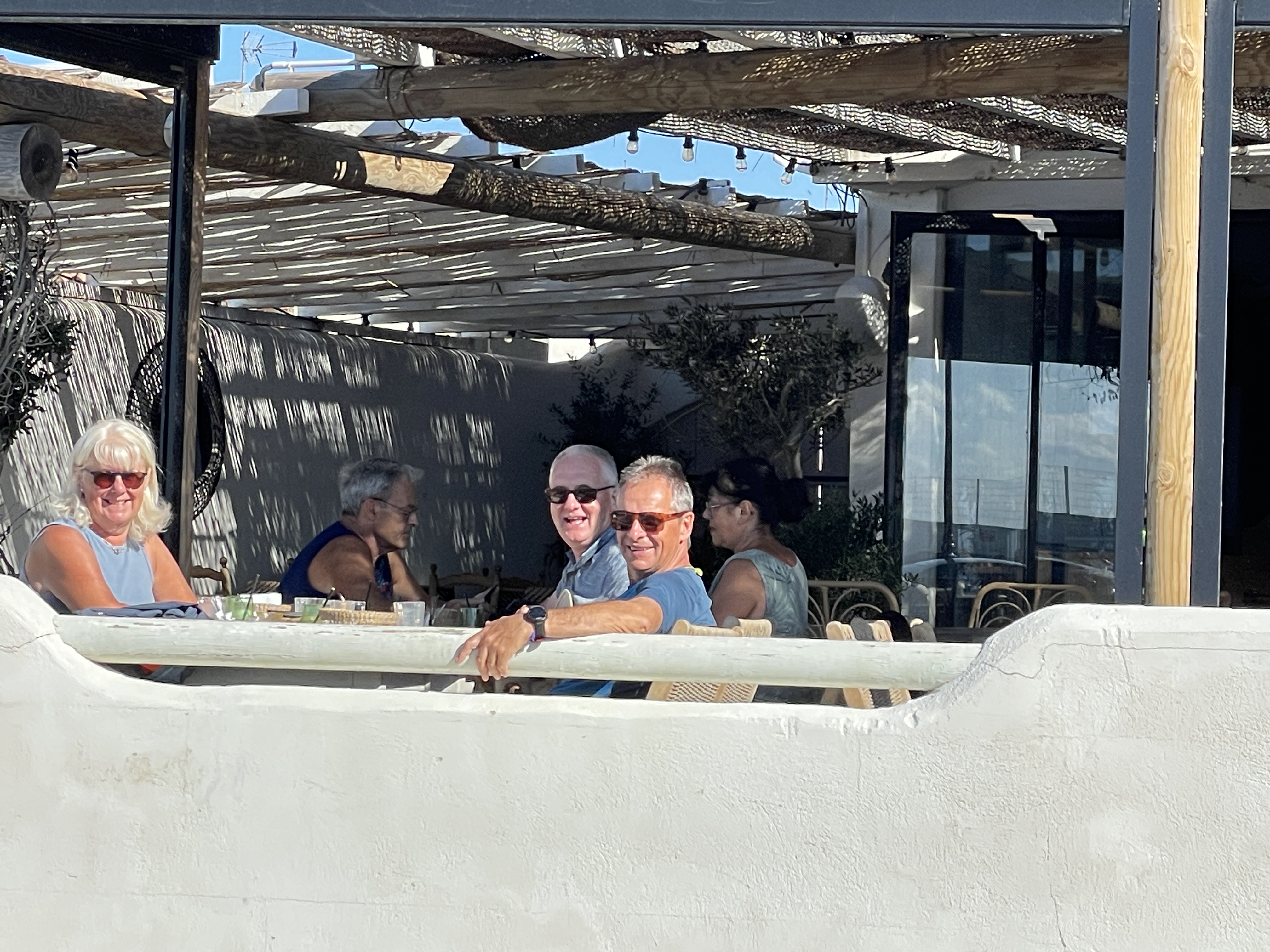 We liked Saintes Marie so much we got up early the next morning to walk along the beach into town for breakfast. As we did so we passed staff in the beach bars shovelling out bucketfuls of sand that had been washed in by the storms.
