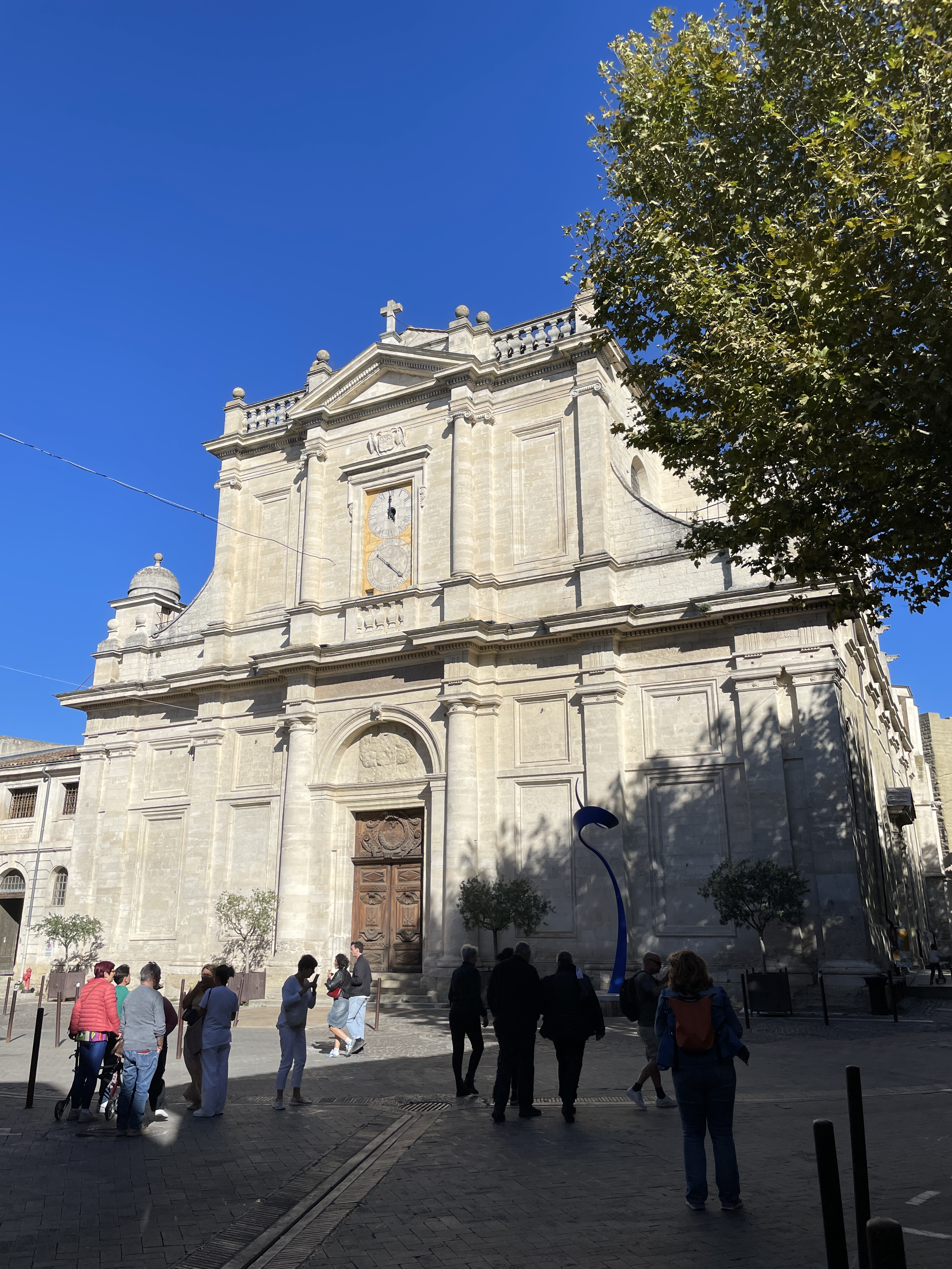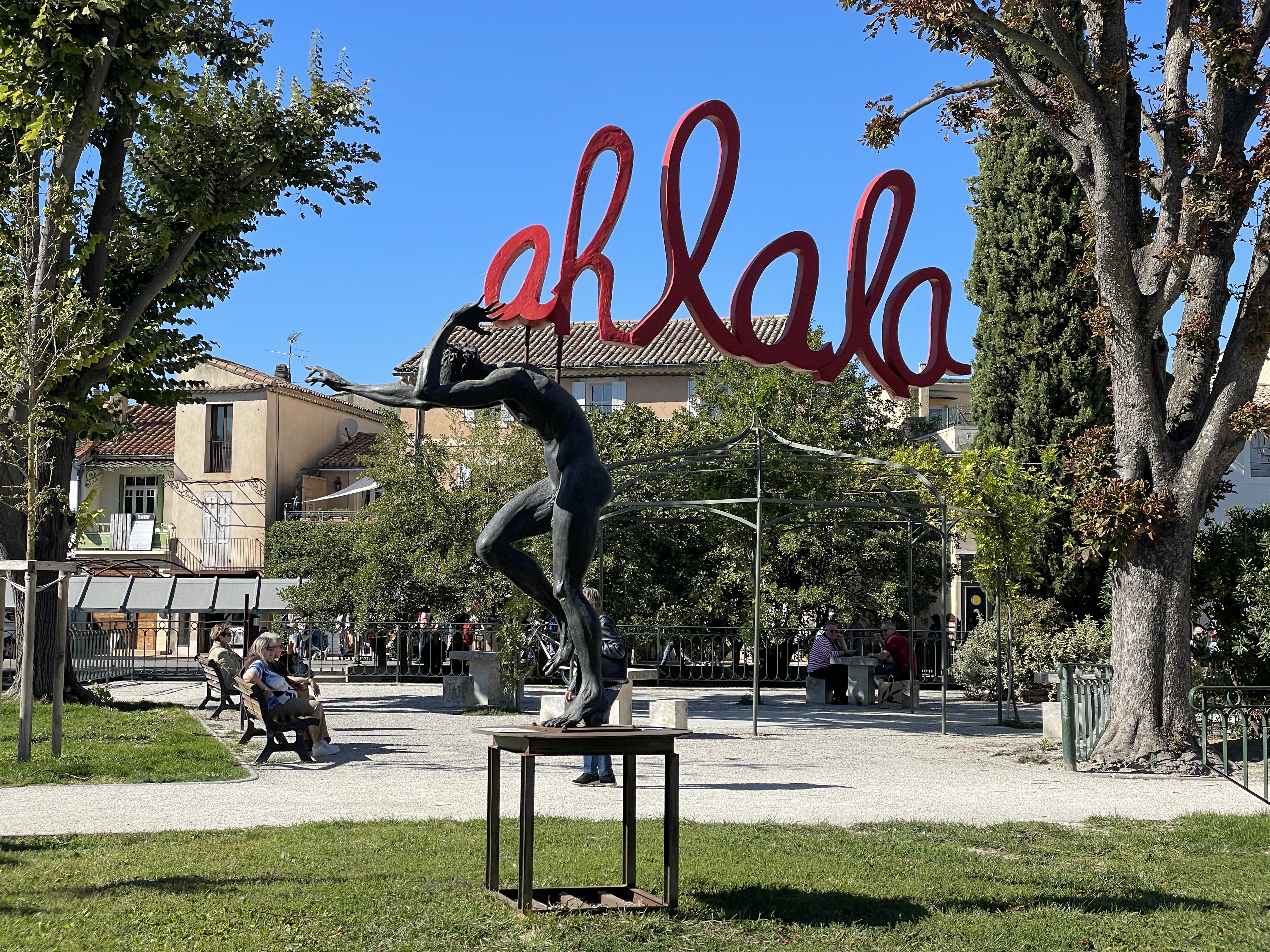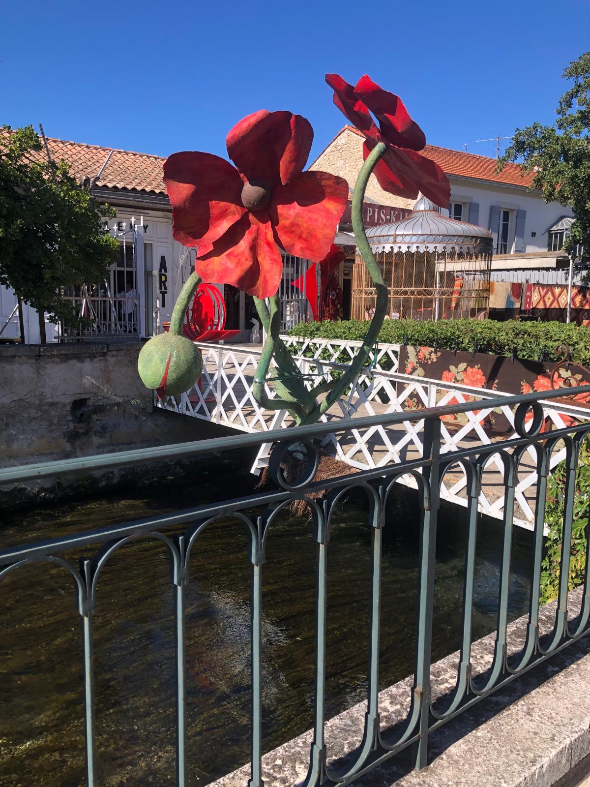 The guide books and internet are pretty dismissive of L’Isle-sur-la-Sorgue, but it is a charming town. It is built on an island between two branches of the river Sorgue and while it might not be ‘chocolate box pretty’, it has the added advantage of being a proper working town, it has authenticity. A heritage trail took us passed loads of restored waterwheels and the waterways have been enhanced further still by the recent addition of quirky statues.