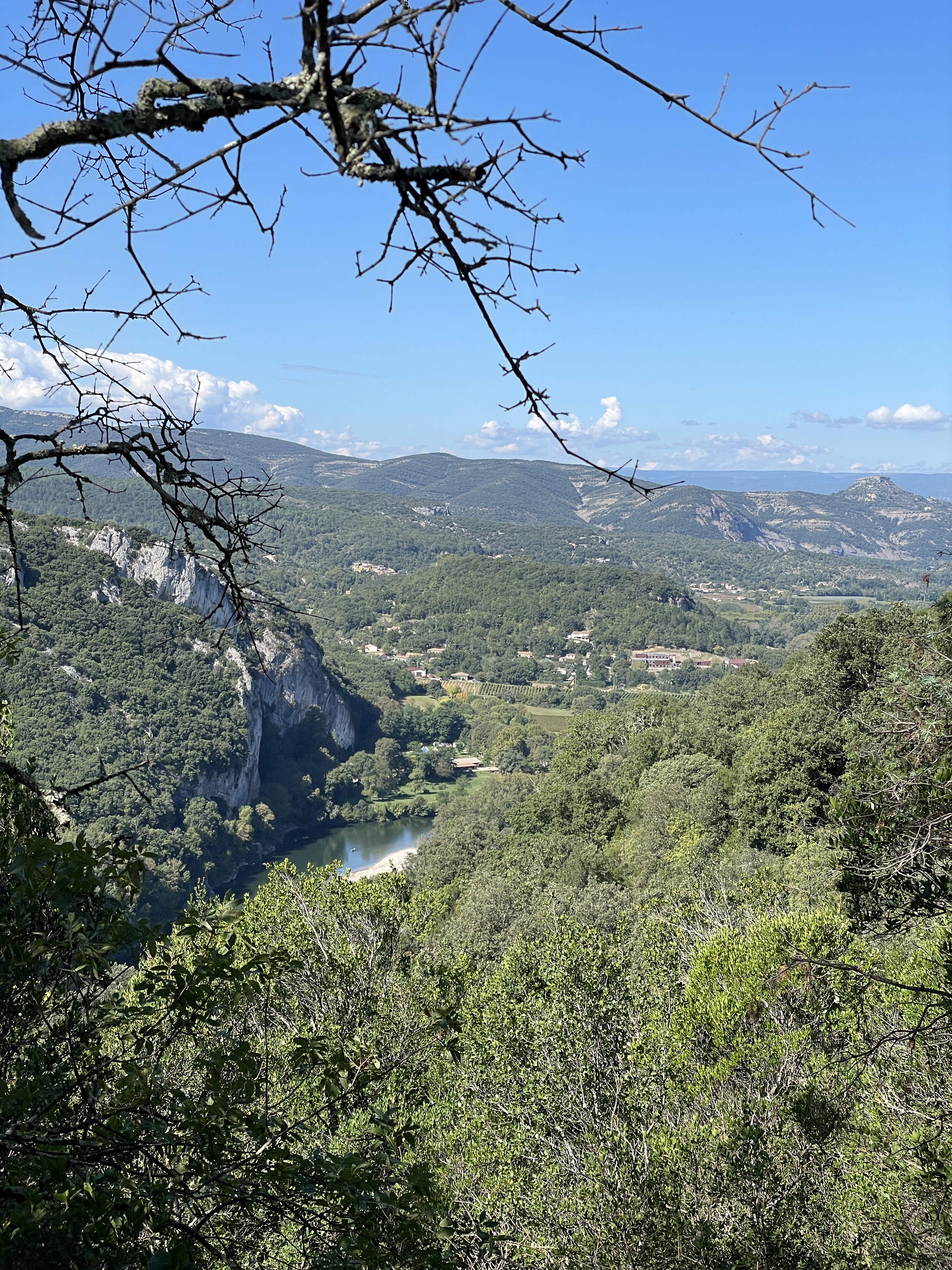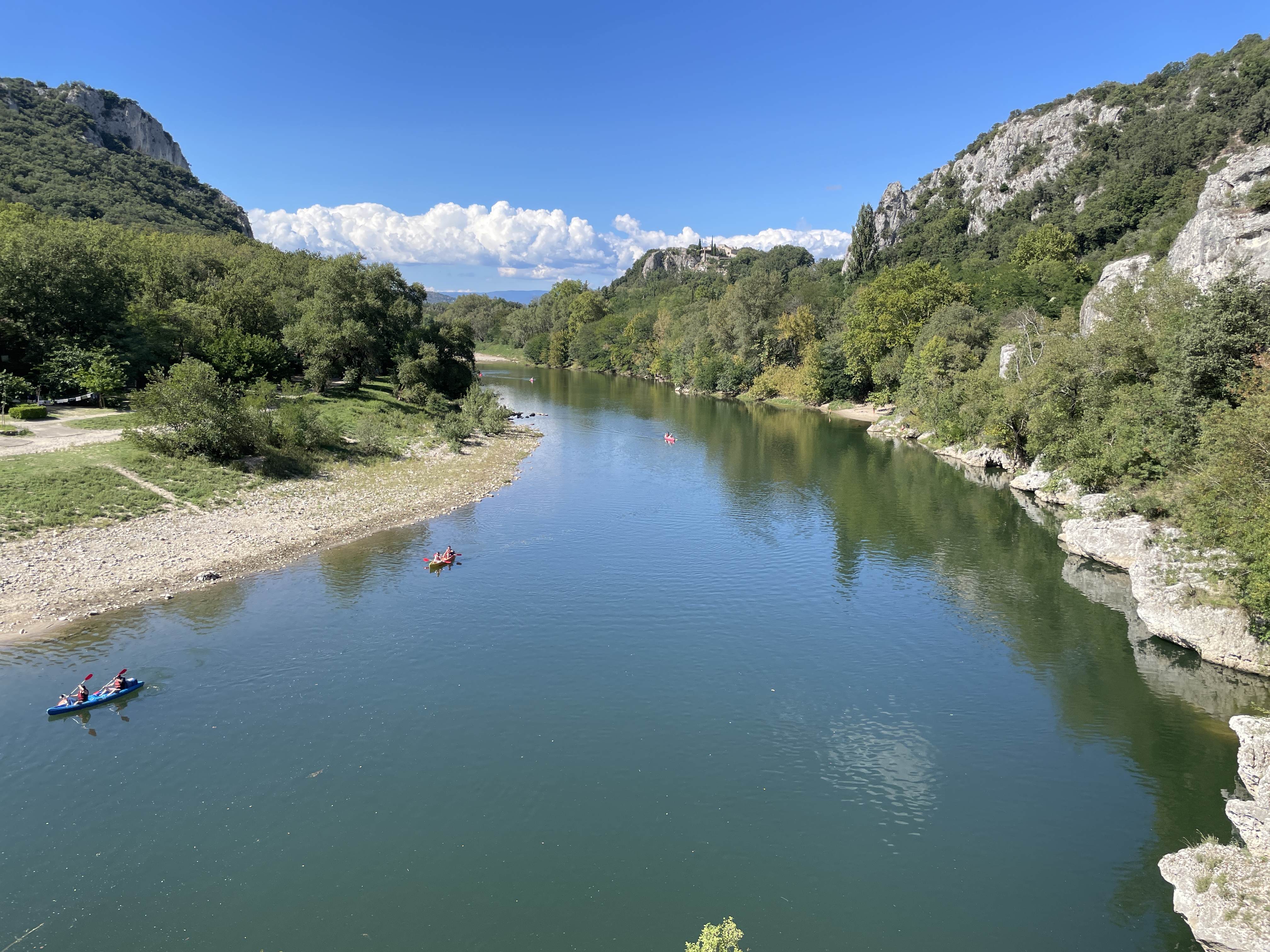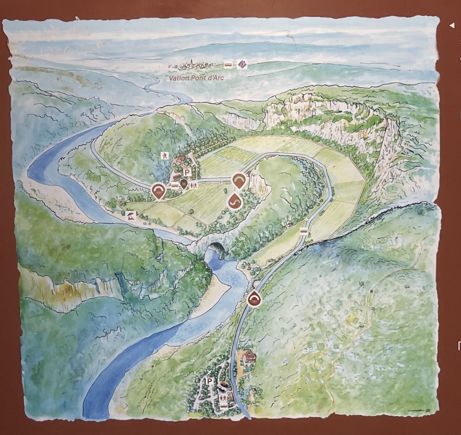 Camping l’Ardèchois is a very fine site (and so it should be for 50€ a night!) with a good dog walking area, that is just a little short for a decent ball chase, but the real reason we are here is because it is only 3km from the Pont d’Arc the world famous natural ‘bridge’ that spans the river. Over millennia the river got fed up going around a massive lump of limestone so created its own short cut through it.