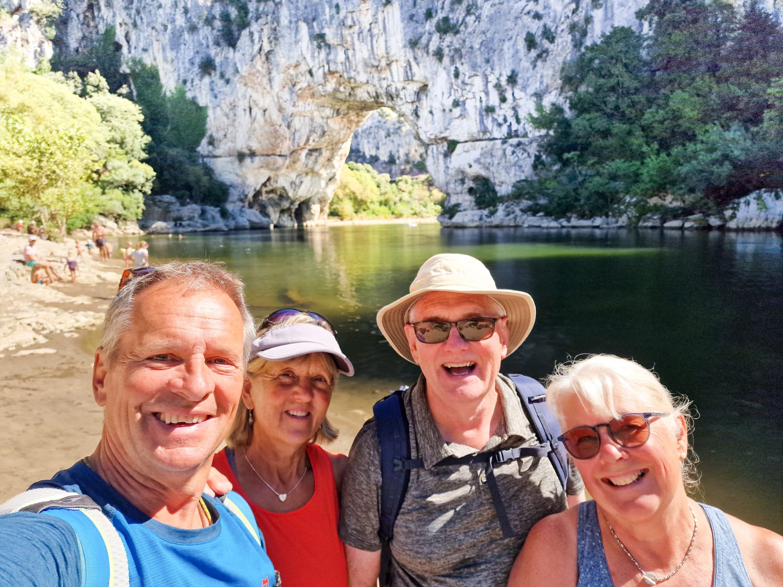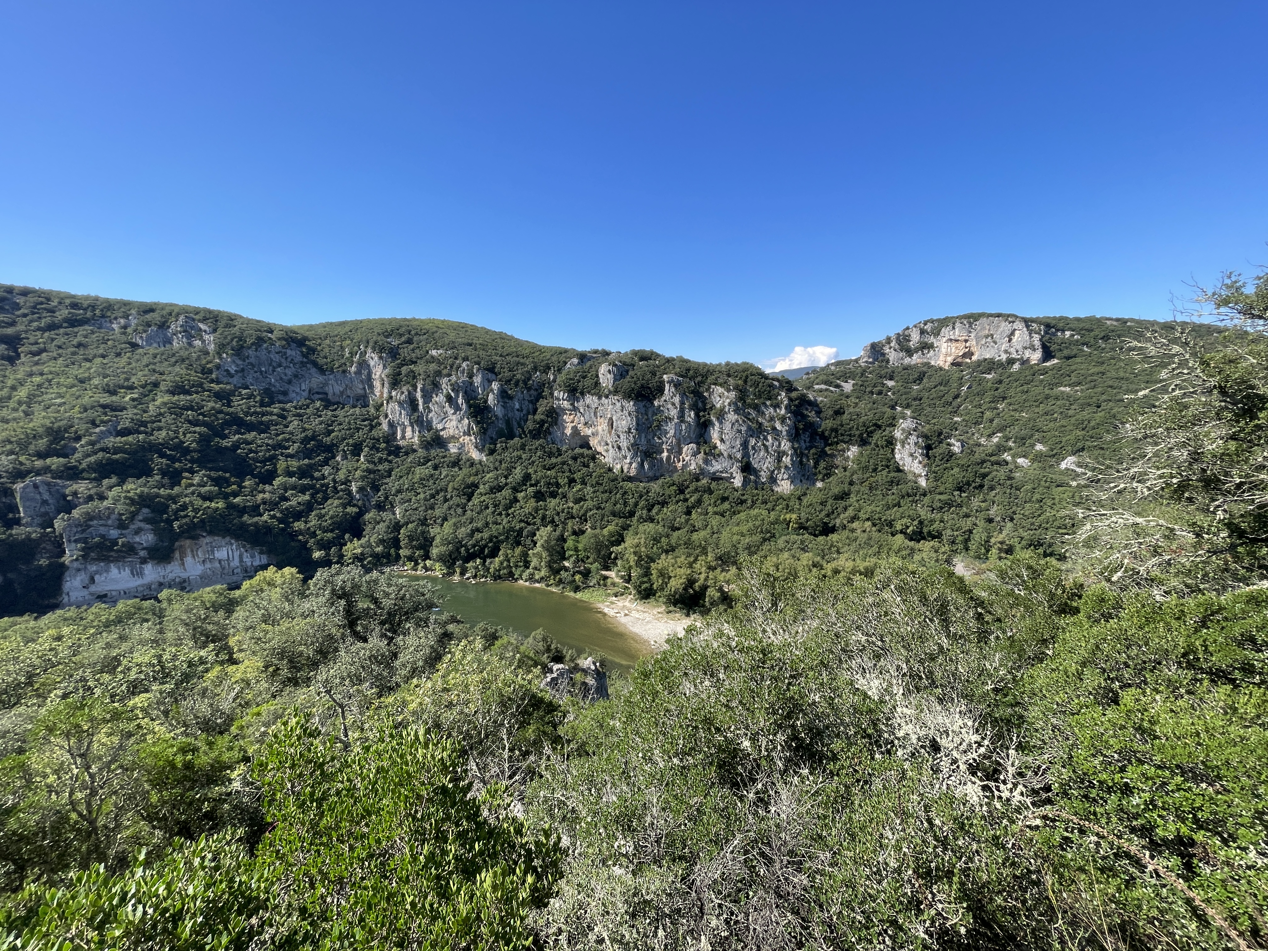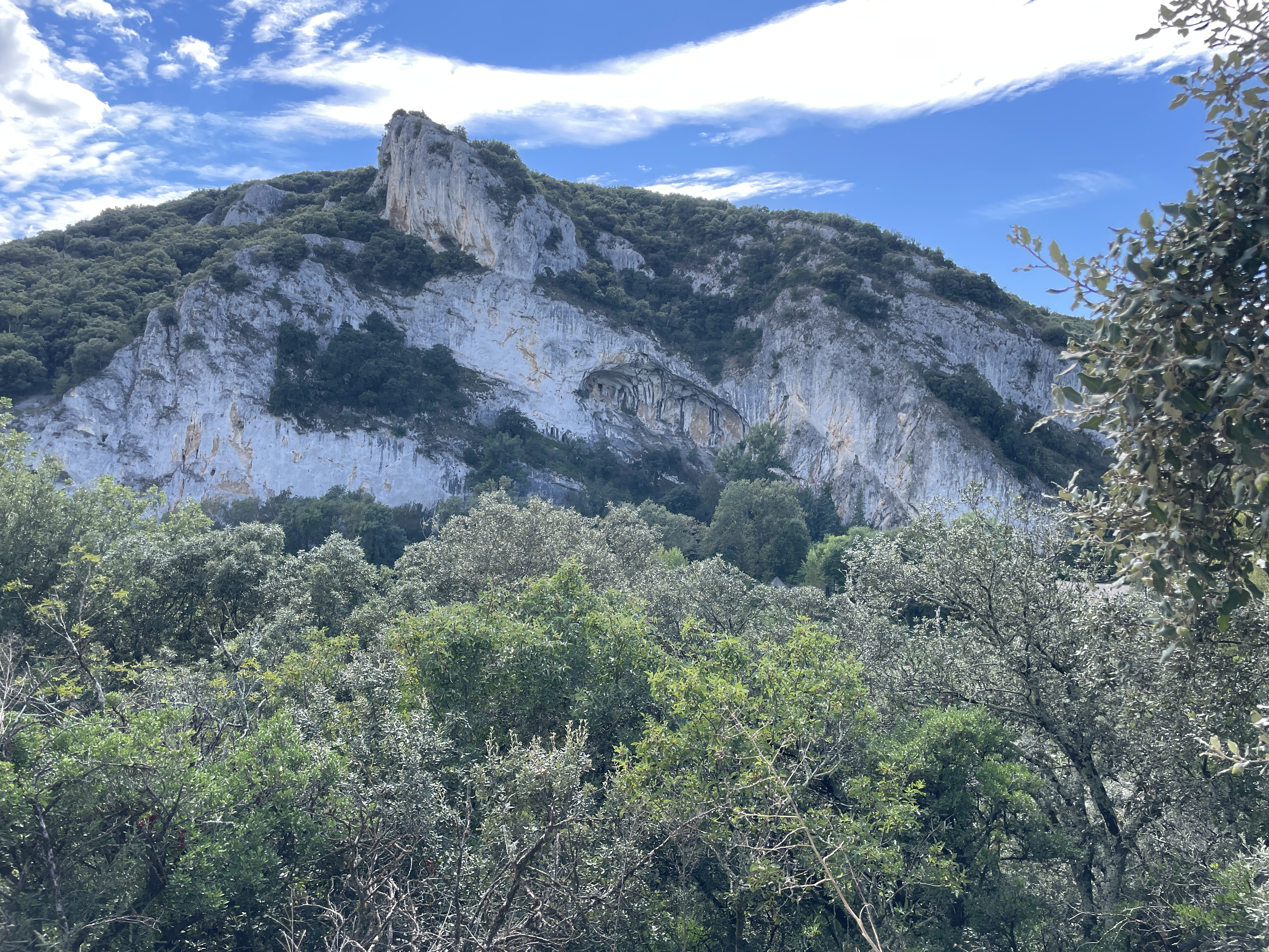 Camping l’Ardèchois is a very fine site (and so it should be for 50€ a night!) with a good dog walking area, that is just a little short for a decent ball chase, but the real reason we are here is because it is only 3km from the Pont d’Arc the world famous natural ‘bridge’ that spans the river. Over millennia the river got fed up going around a massive lump of limestone so created its own short cut through it.