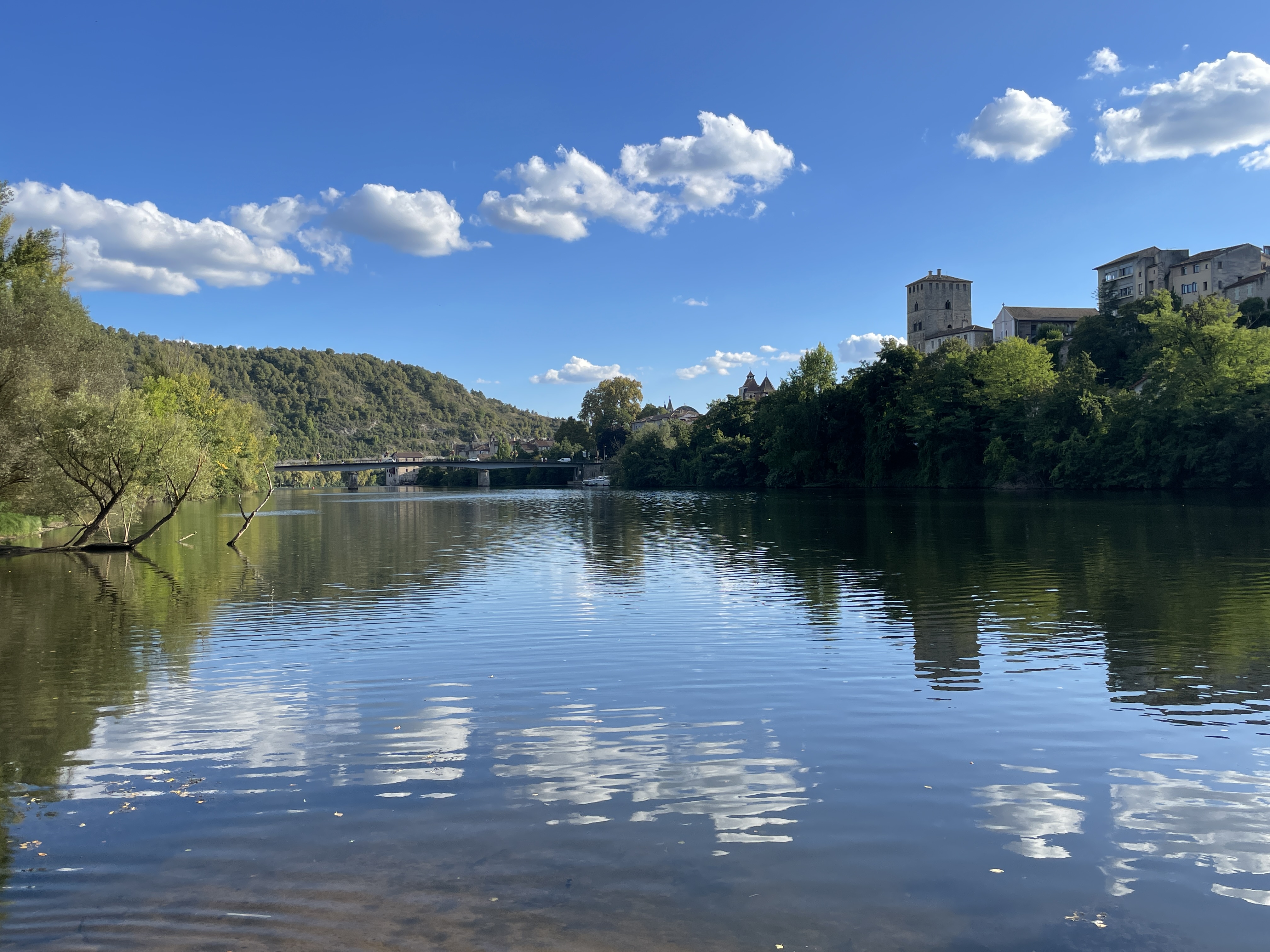 Its at times like this you realise just how big France is. It is almost 300 miles as the crow flies (no more vultures here!) and almost 400 on the wriggly roads we will be taking. Cahors is more or less, exactly half way. It took us six hours to drive along some really beautiful roads. Apart from the rugged scenery, you can tell they are scenic as there were loads of motorbikes on the roads too. So if you are a biker, you might want to try the N106 and the N88 that follow the Lot and Tarn valleys. On the way we crested the Col Jalcreste at 820 metres, the Col de Montmirat (1046 m), and the Col de la Fagette (882 m). The driving was so ‘interesting’ that by the time we reached Cahors I had cramp in my left calf and shin from the workout I had given the clutch (didn’t get into 6th the whole way).